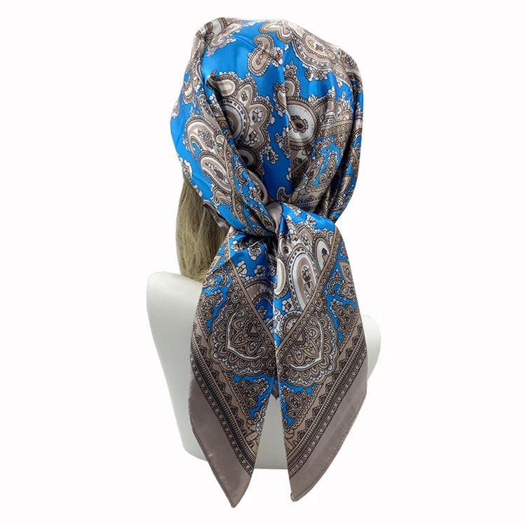 90*90cm Square Silk Scarves Women Hijab Shawls Fashion Print Kerchief Femme Head Scarf Foulard Bandana Beach Pareo