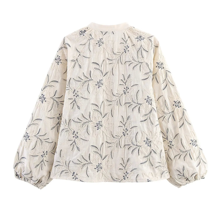 European and American style 2025 early autumn new embroidered casual long-sleeved shirt with old style loose top