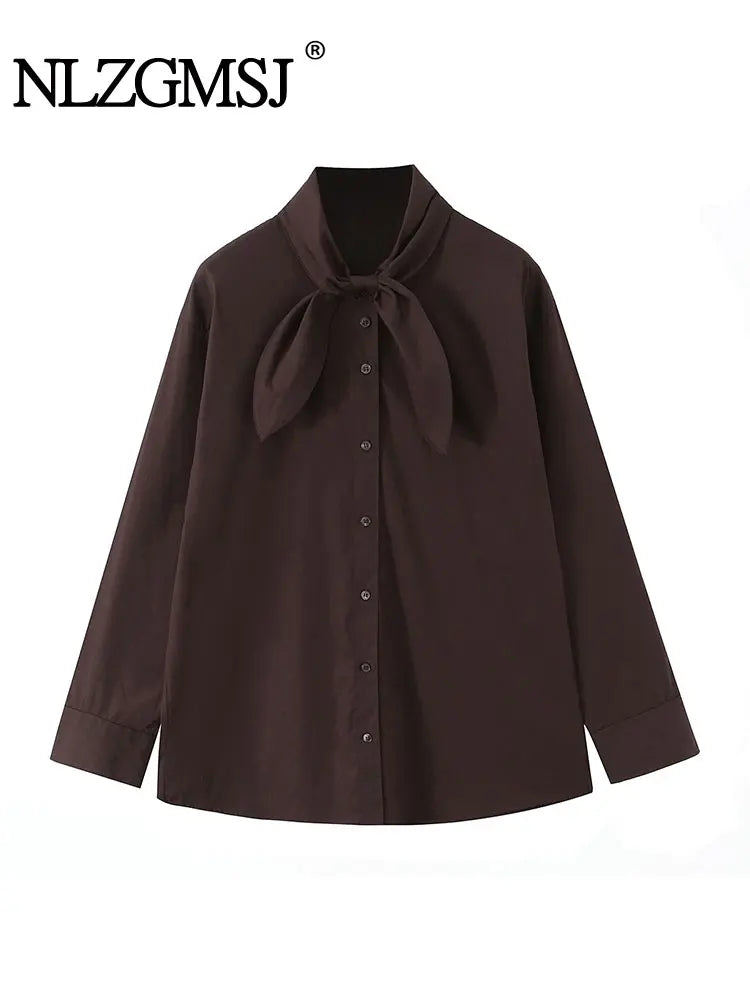 NLZGMSJ Woman Scarf Shirts 2025 Autumn Elegant Office Lady Loose Chic Slim Daily Full Sleeve Daily Shirts