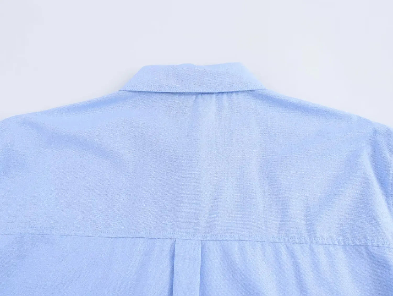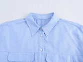 PB&ZA Women's Three - quarter Sleeved Collared Button - down Shirt with Chest Pockets and Loose Fit for a Casual and Trendy Look