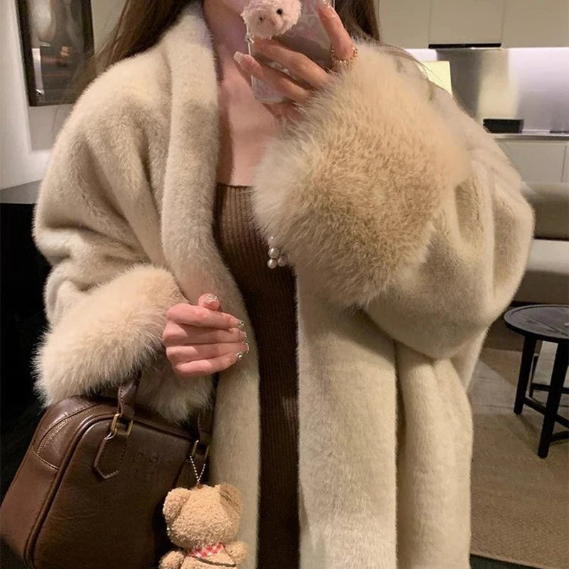 Faux Mink Fur Coats Women Winter Fashion Elegant Thick Hairy Loose Casual Jacket Chic Small Fragrance Long Sleeve Warm Outwear