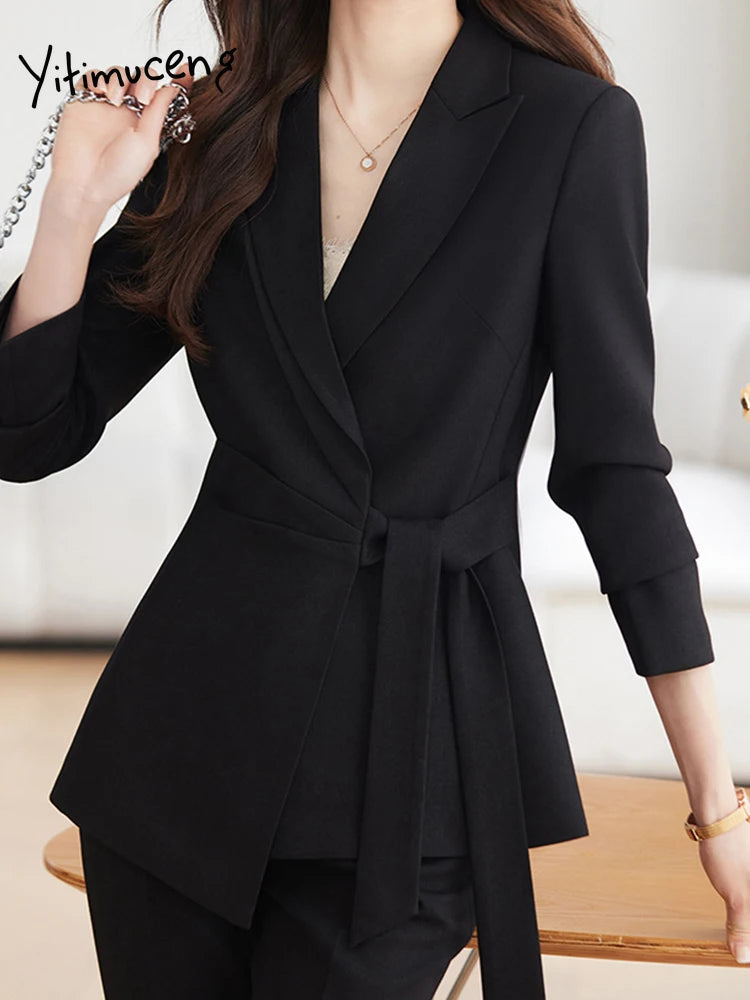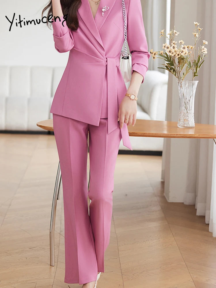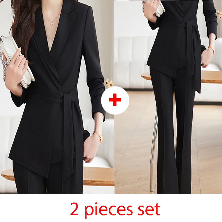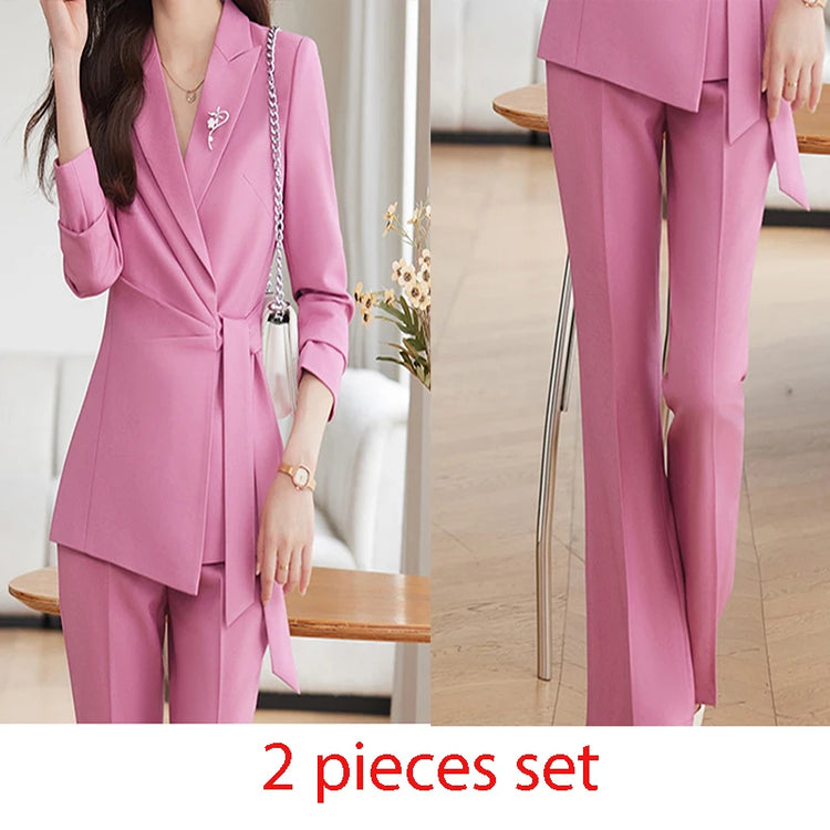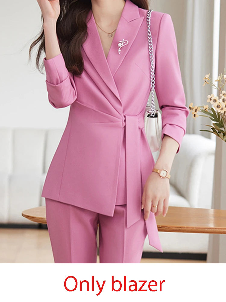 French Style Elegant Women Suits Office Formal Wear 2024 New Fashion Long Sleeve Blazers Chic Casual Streetwear Pants Suits