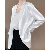 Luxury Women's 2025 Spring One-Button Satin Blazer White Office Tailored Shoulder Slim Suit Jacket Silky Smooth Formal Workwear