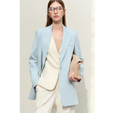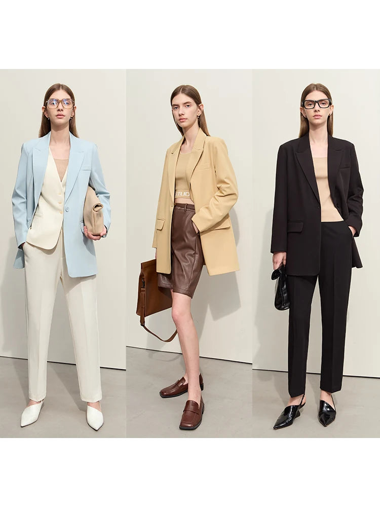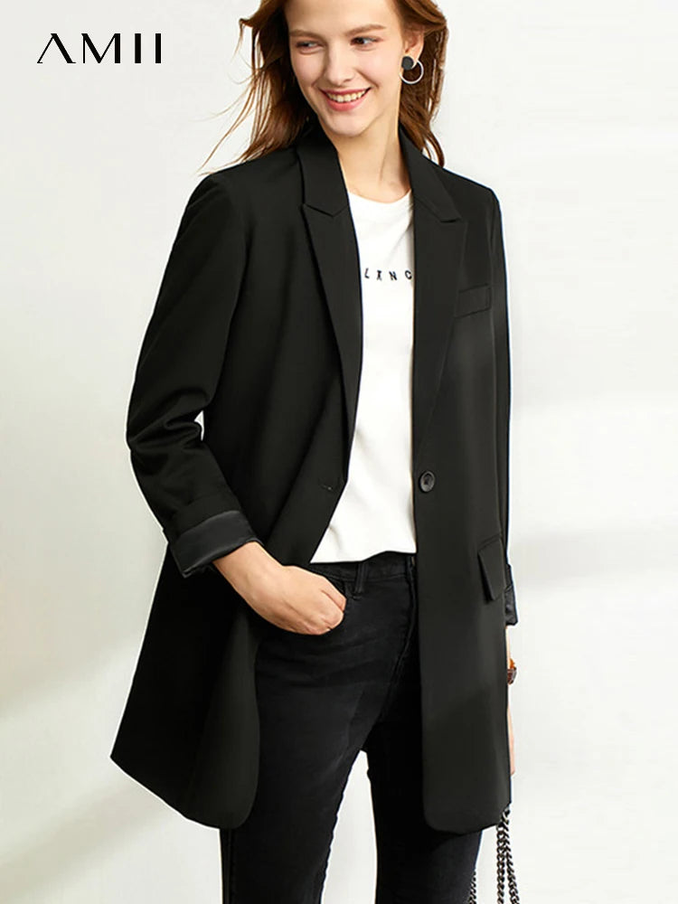 AMII Minimalism Blazer for Women Korean 2023 Sping New Loose Office Lady Women's Jacket Fashion Black Solid Female Coat 12321065
