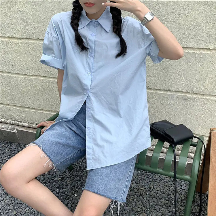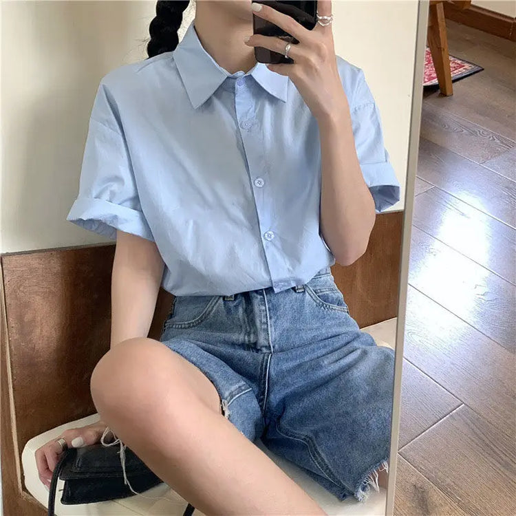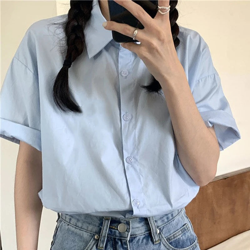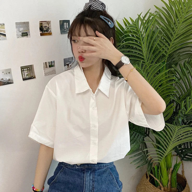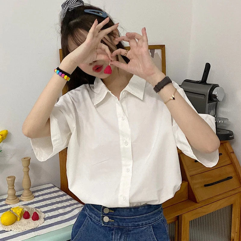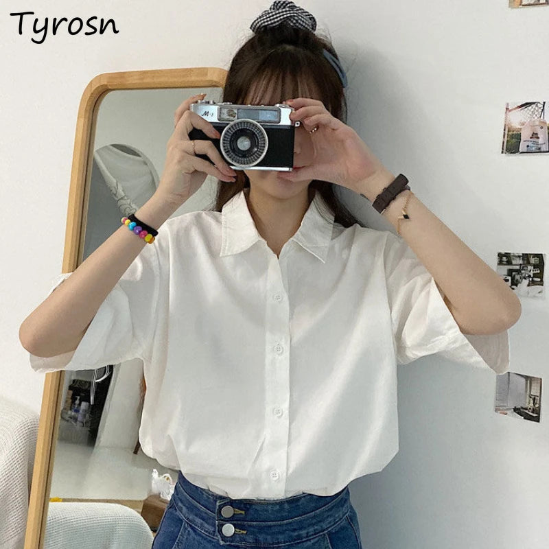 Basic Shirts Women Minimalist Pure Daily Short-sleeve Summer Straight All-match Casual Korean Style Colleges White Classic Chic