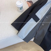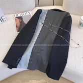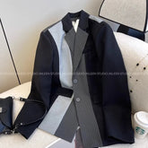 Black Grey Atitching Contrast Blazer Jacket Women 2025 Autumn New Retro Design Sense Silhouette Loose Thin Suit Coat Female Top
