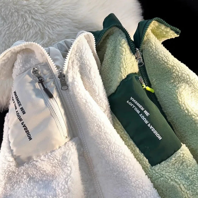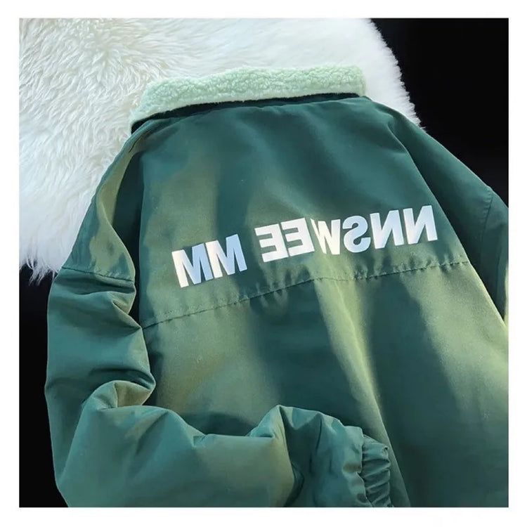 Double-sided wear lamb wool coat autumn/winter plus velvet thickening hipster cool fashion popular baseball clothing male couple