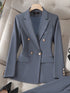 Fashion Autumn Winter Apricot Women Blazer Coat Long Sleeve Ladies Casual Jacket