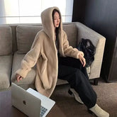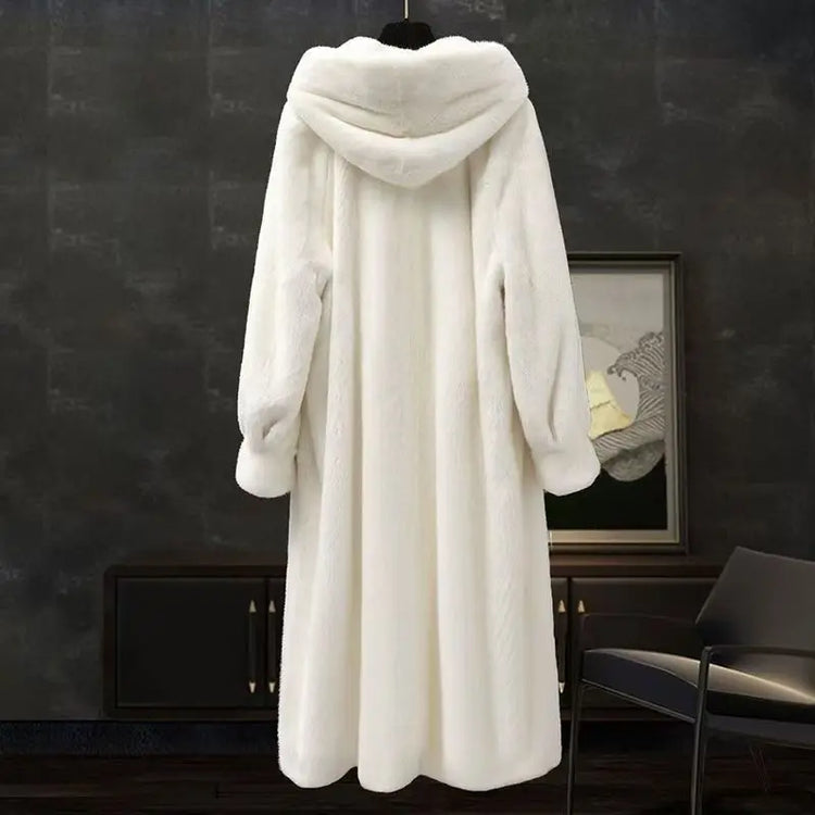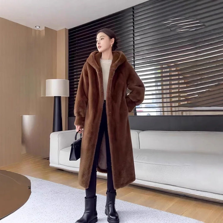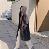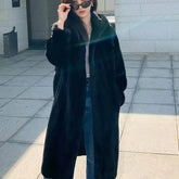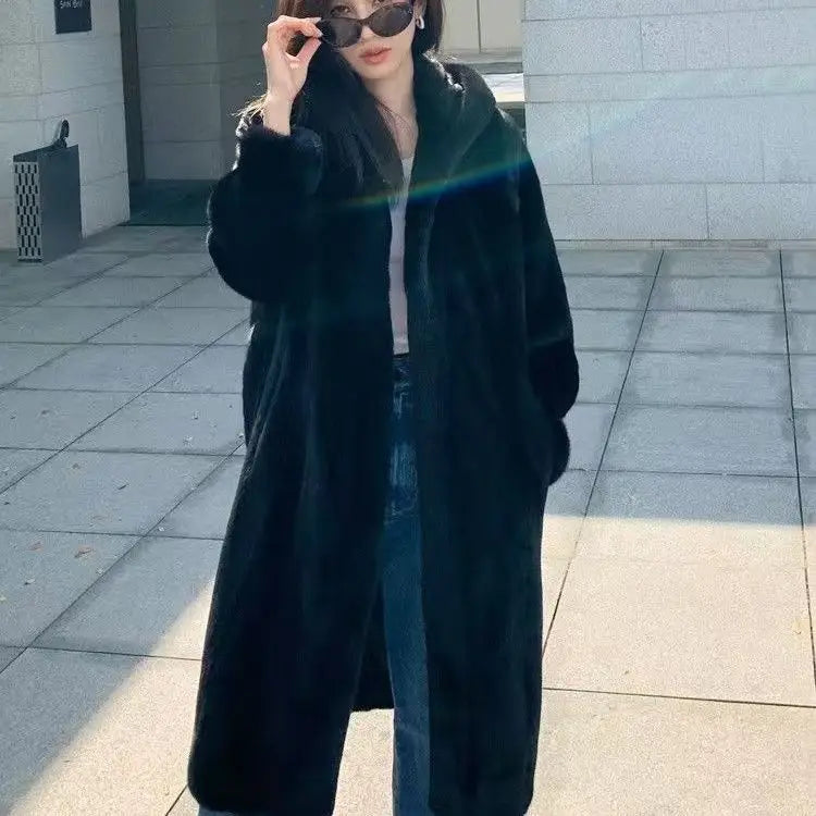 Faux Fur Jackets Women Hoodies Solid Elegant Long Coat Cardigan Thick Jacket Tops Streetwear Pockets Coats Winter 2025