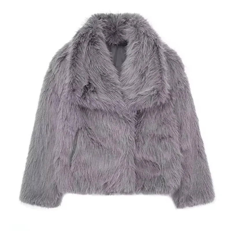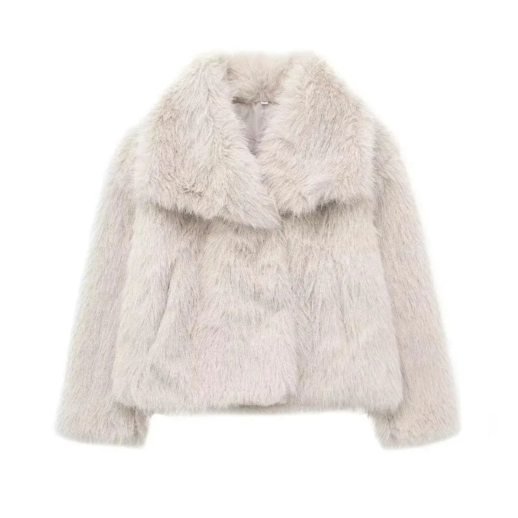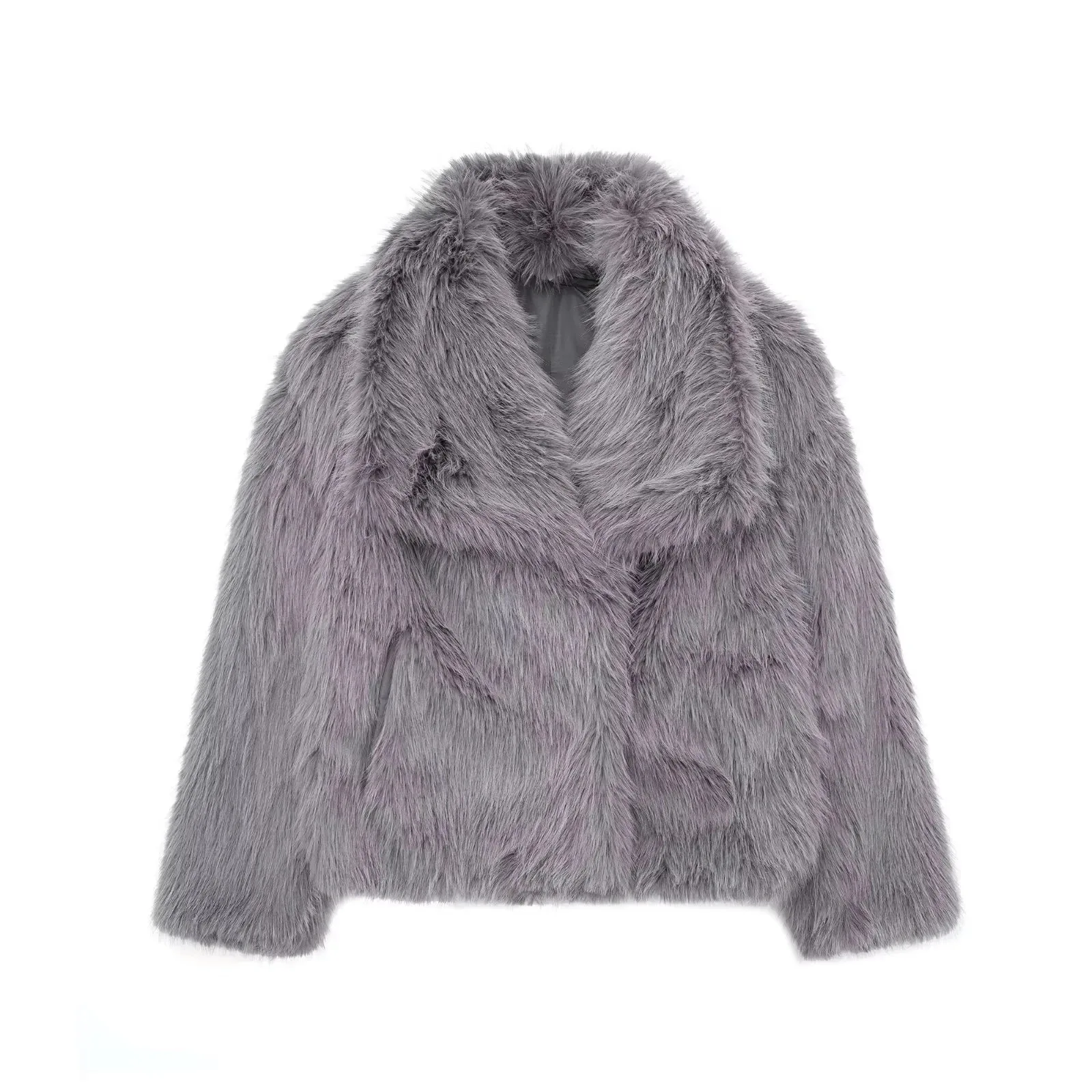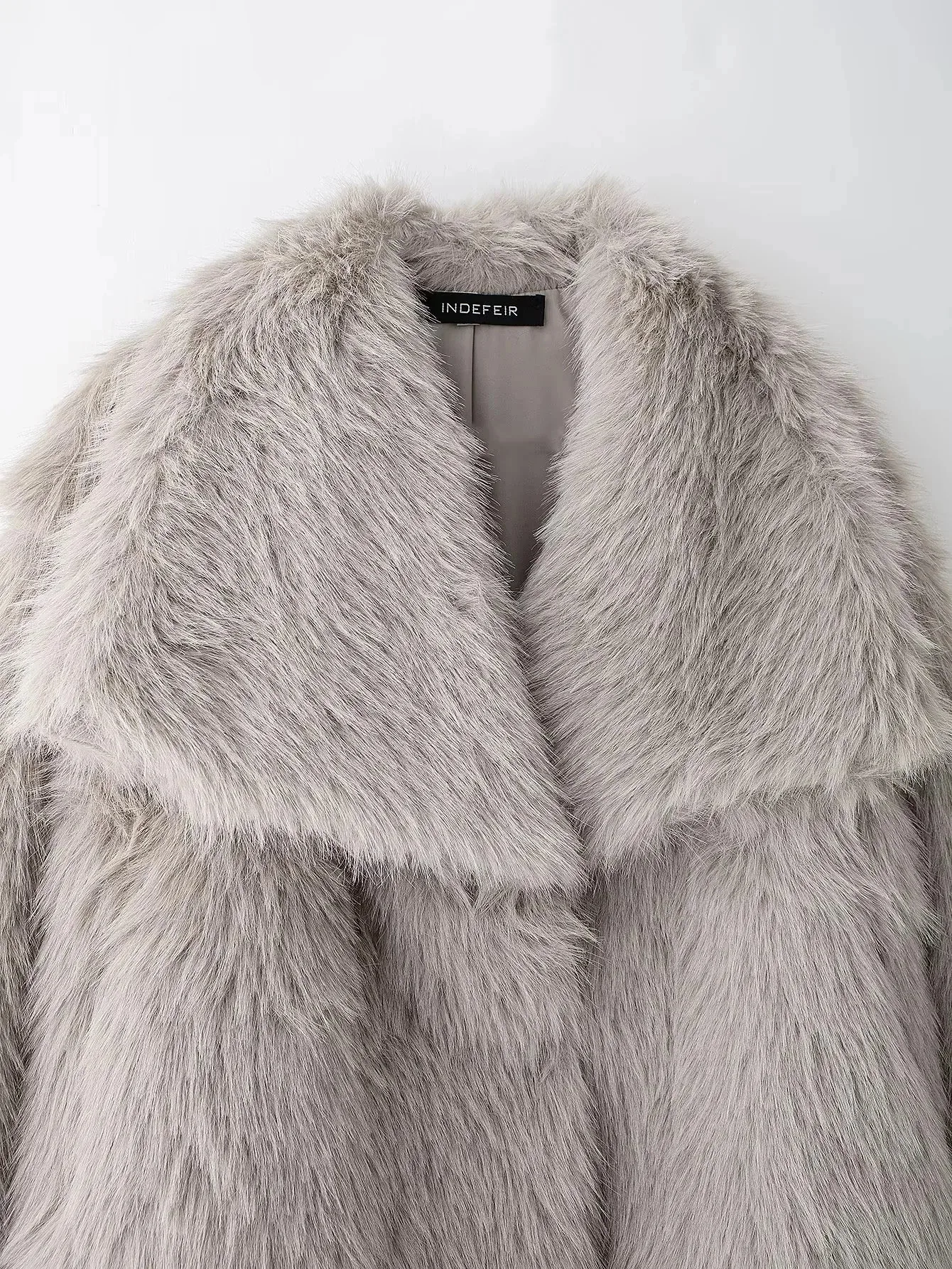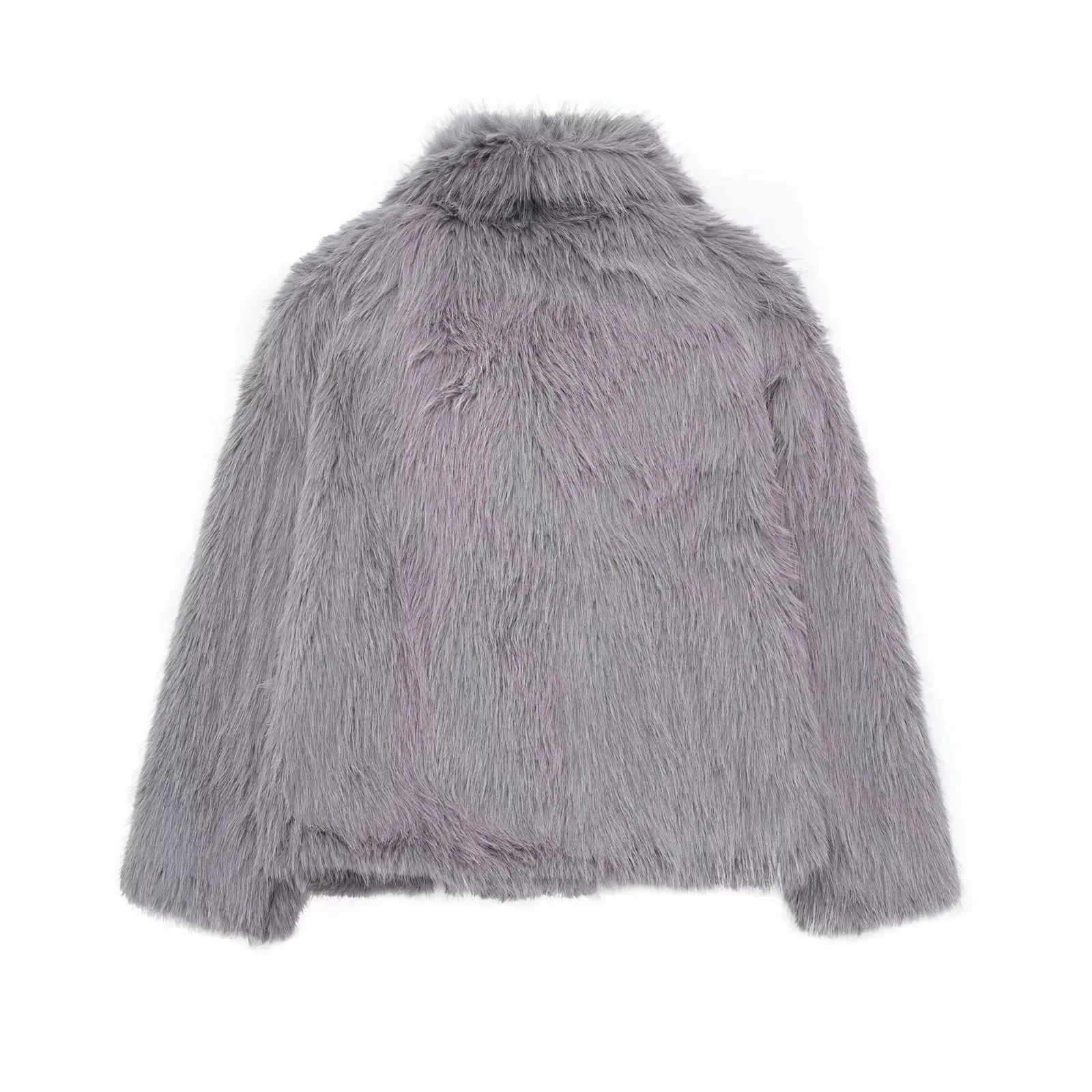 Faux Fur Warm Loose Jackets For Women Loose Stand Collar Long Sleeve Coat 2023 Autumn Winter Chic Female New Outerwear