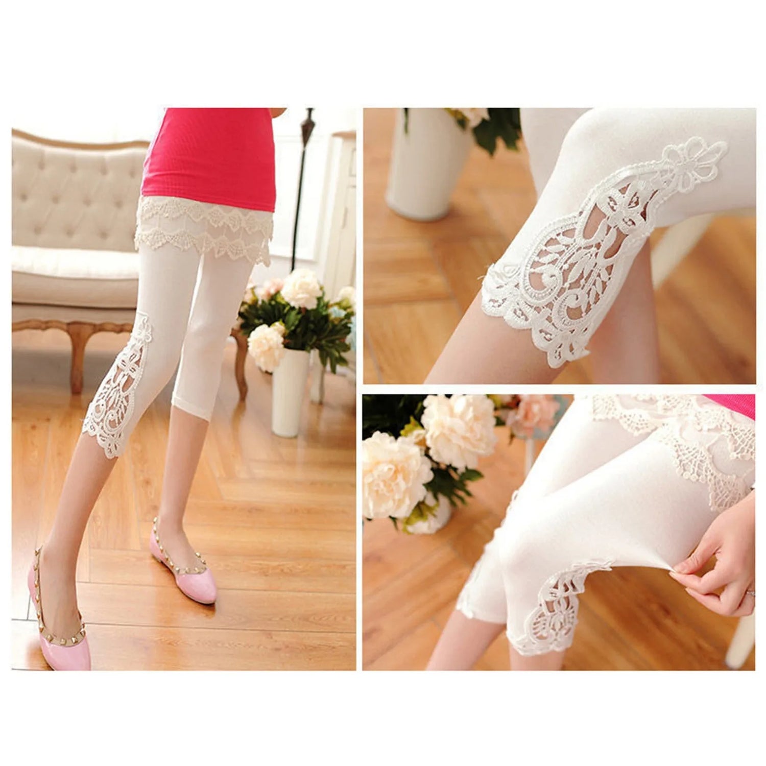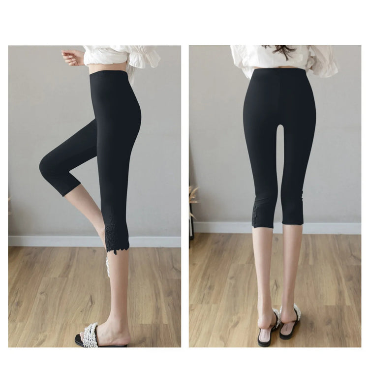 Women's Fashion Casual Outer Bottoming Trousers Solid Lace Seventh Trousers