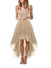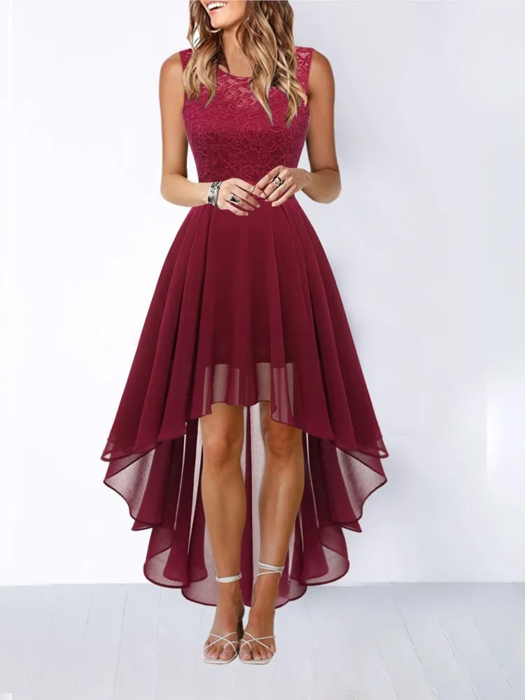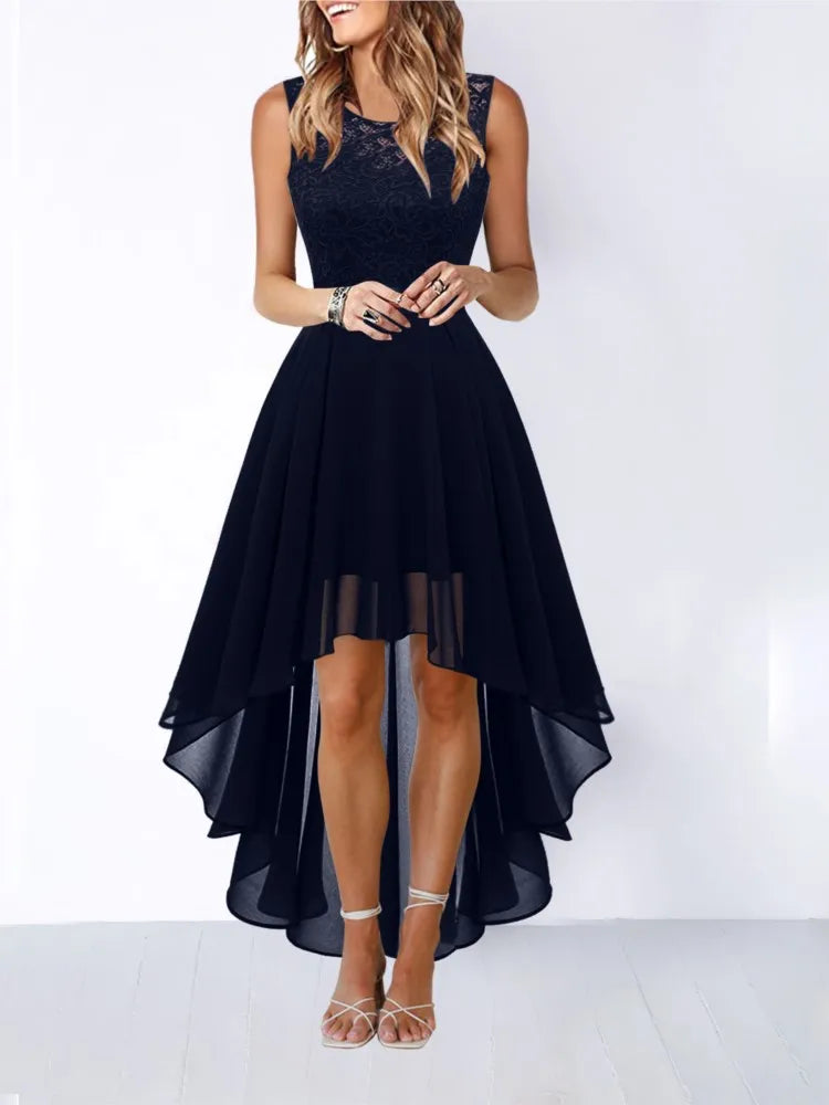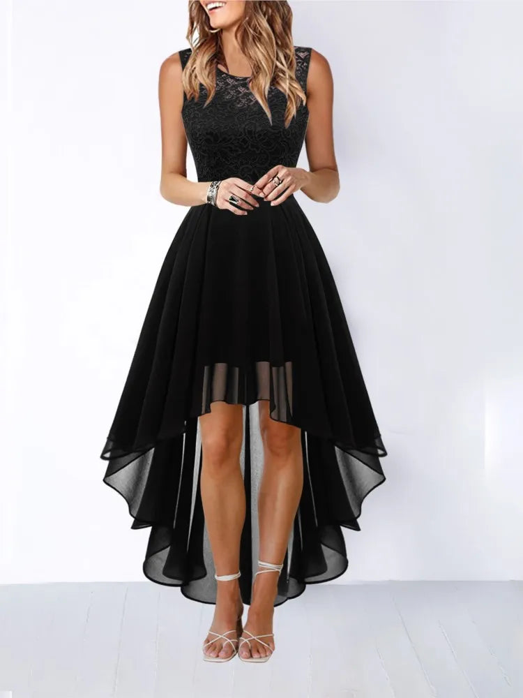 Hollow-outch Chiffon Dress Dinner Lace Dress Women's Elegant Temperament British Style High-waisted Sleeveless Round-neck Dress