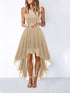 Hollow-outch Chiffon Dress Dinner Lace Dress Women's Elegant Temperament British Style High-waisted Sleeveless Round-neck Dress
