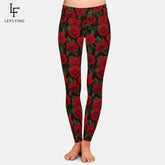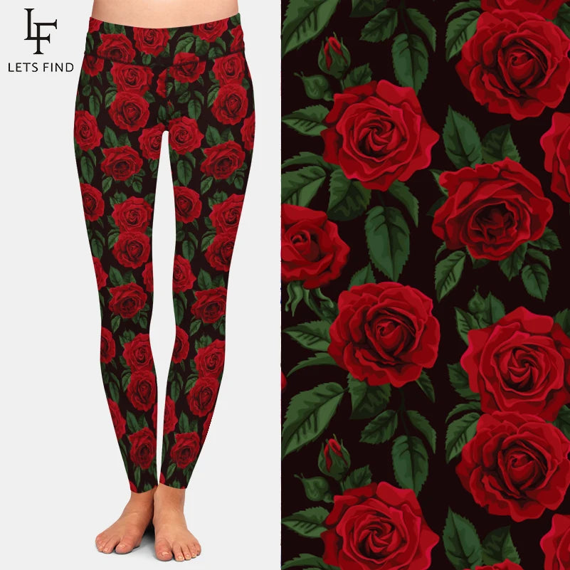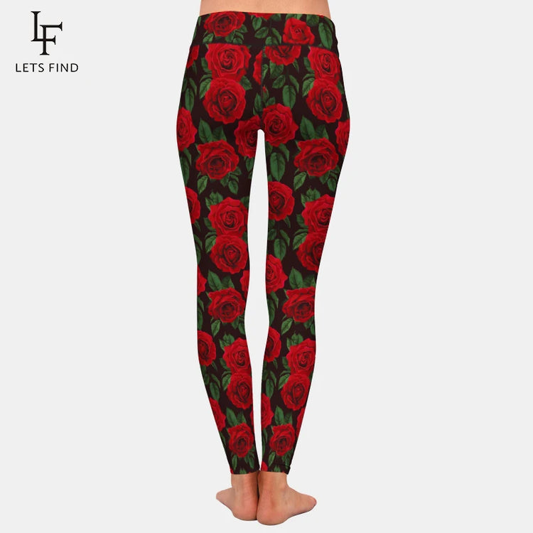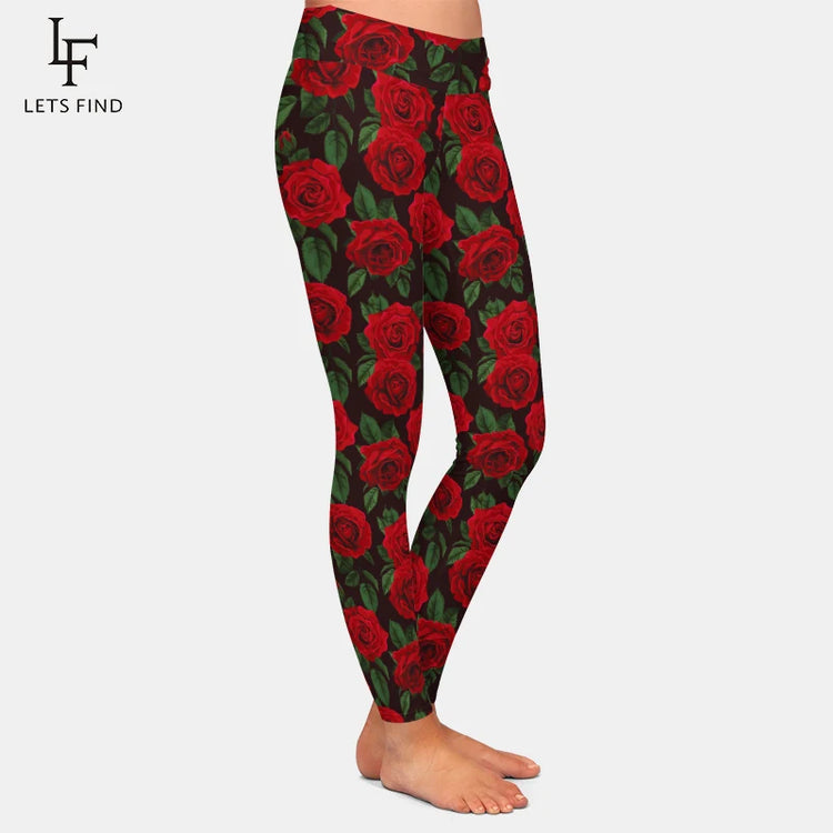 LETSFIND Fashion New Beautiful Red Rose Print Women Leggings High Waist Fitness Polyester Girl Leggings