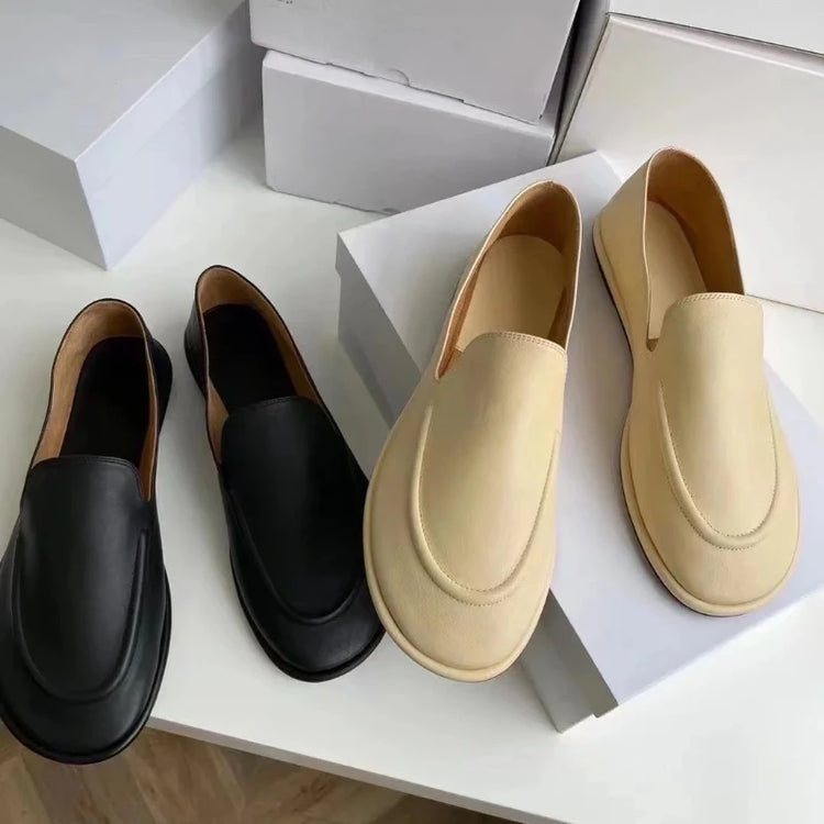 Loafers Women's Shoes 2025 New Spring Round Toe Slip-on Small Leather Shoes Casual Soft Leather Flat Mules