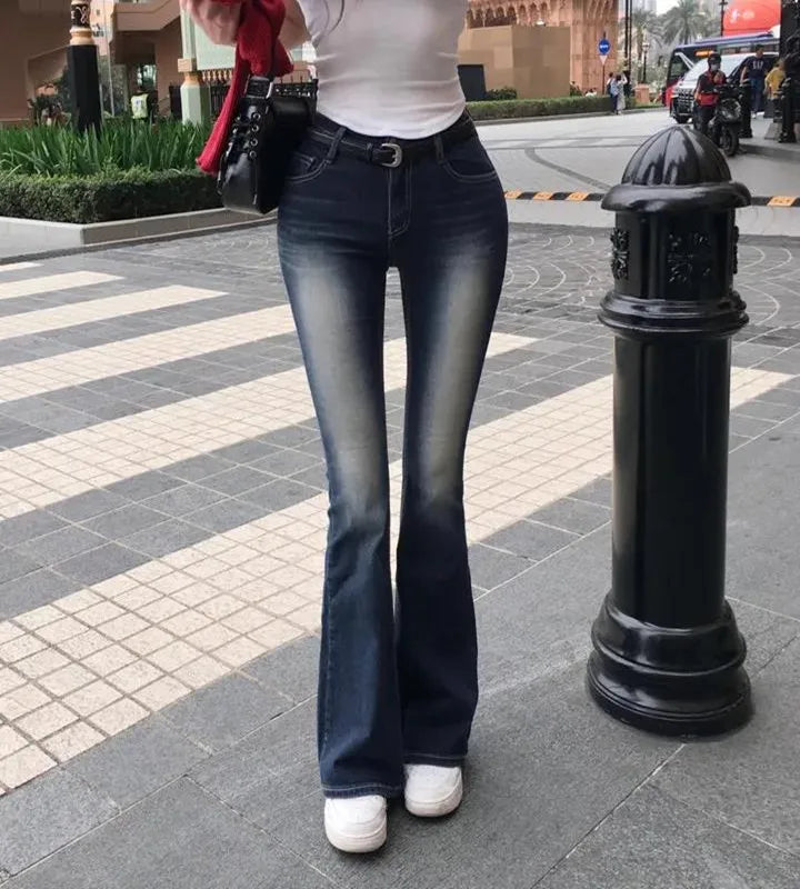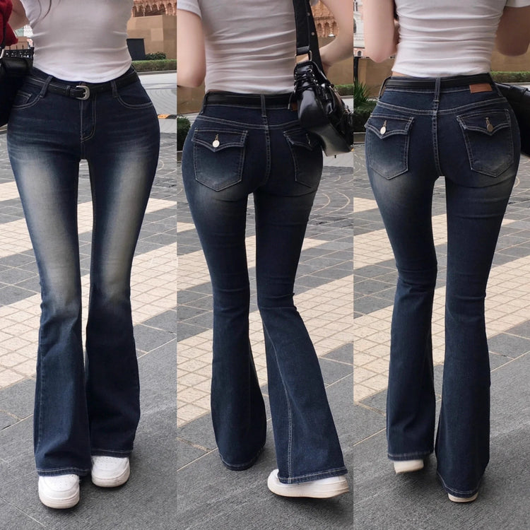 Low Waist Flared Jeans Slimming Legs Plump Hips Bla ey Cotton Stretch Denim Pants Women's Faion Spring 2025