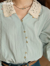 MISHOW Women's Linen Shirt 2025 Autumn Contrast Apricot Lapel Shirts Long Sleeve Curved Placket Tops Office Lady MXE43C2387
