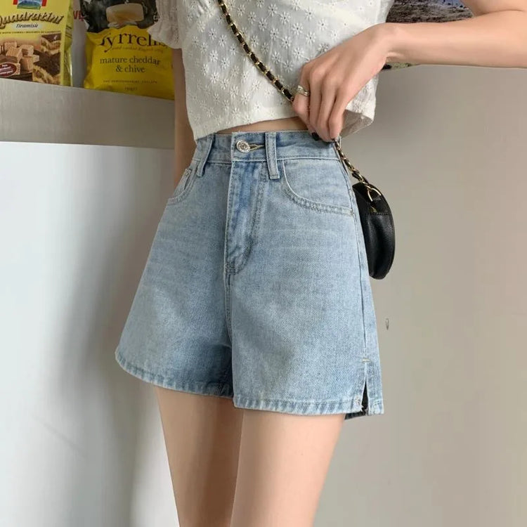 plus Size Women's High Waist Slimming Split Denim orts Hong Kong Sle Straight Leg Loose Wide Leg Hot Pants Summer New Arr...