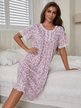 Romantic Sleepwear - Women's Elegant French Pink Floral Sleepwear - Short-sleeved Sleepwear with Romantic Lace Trim and Ruffled