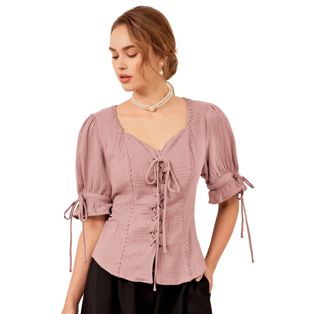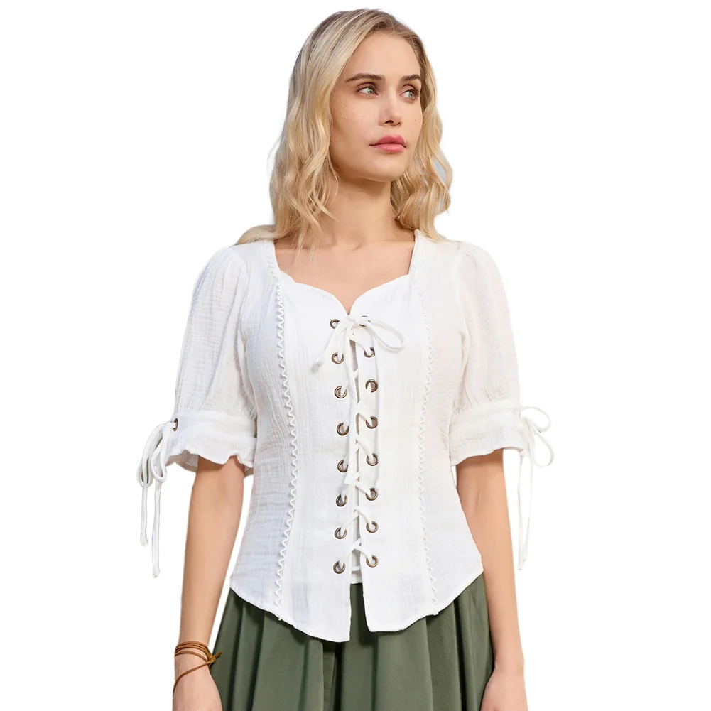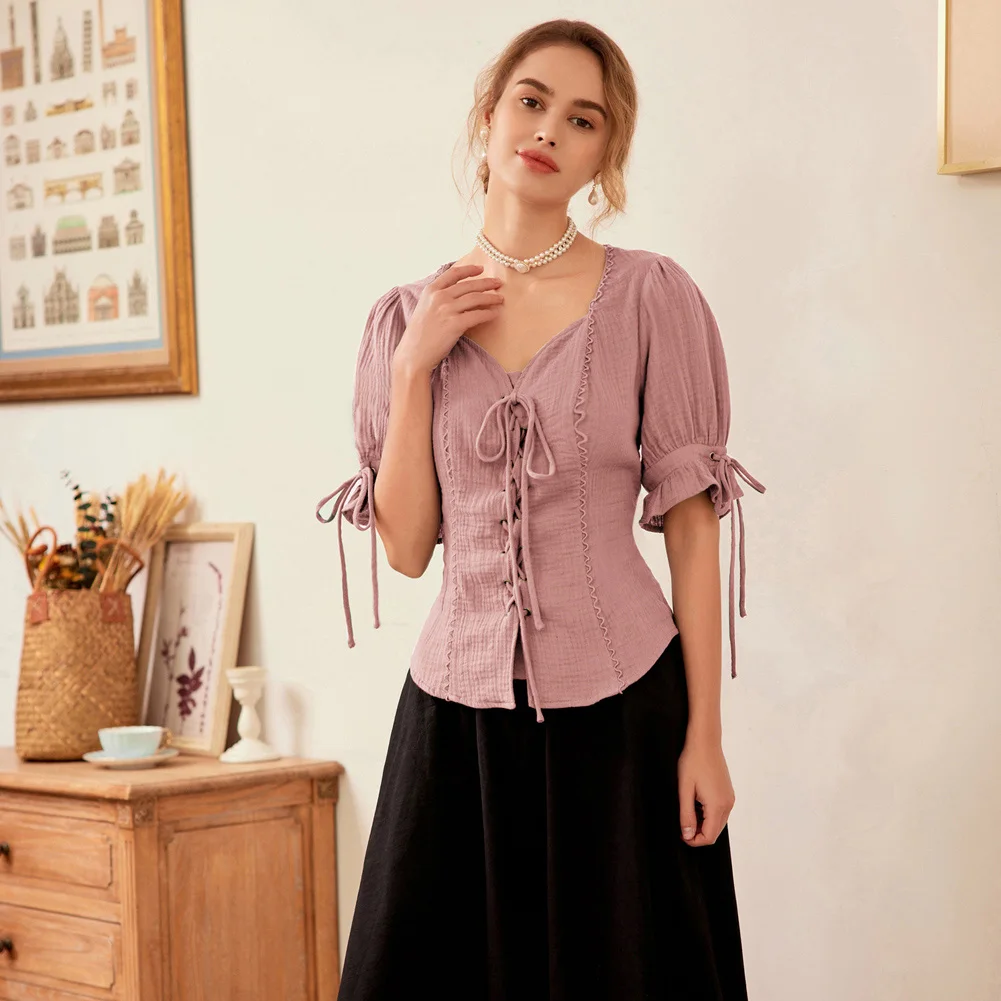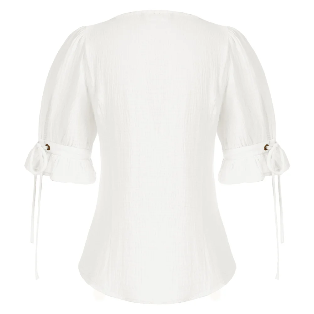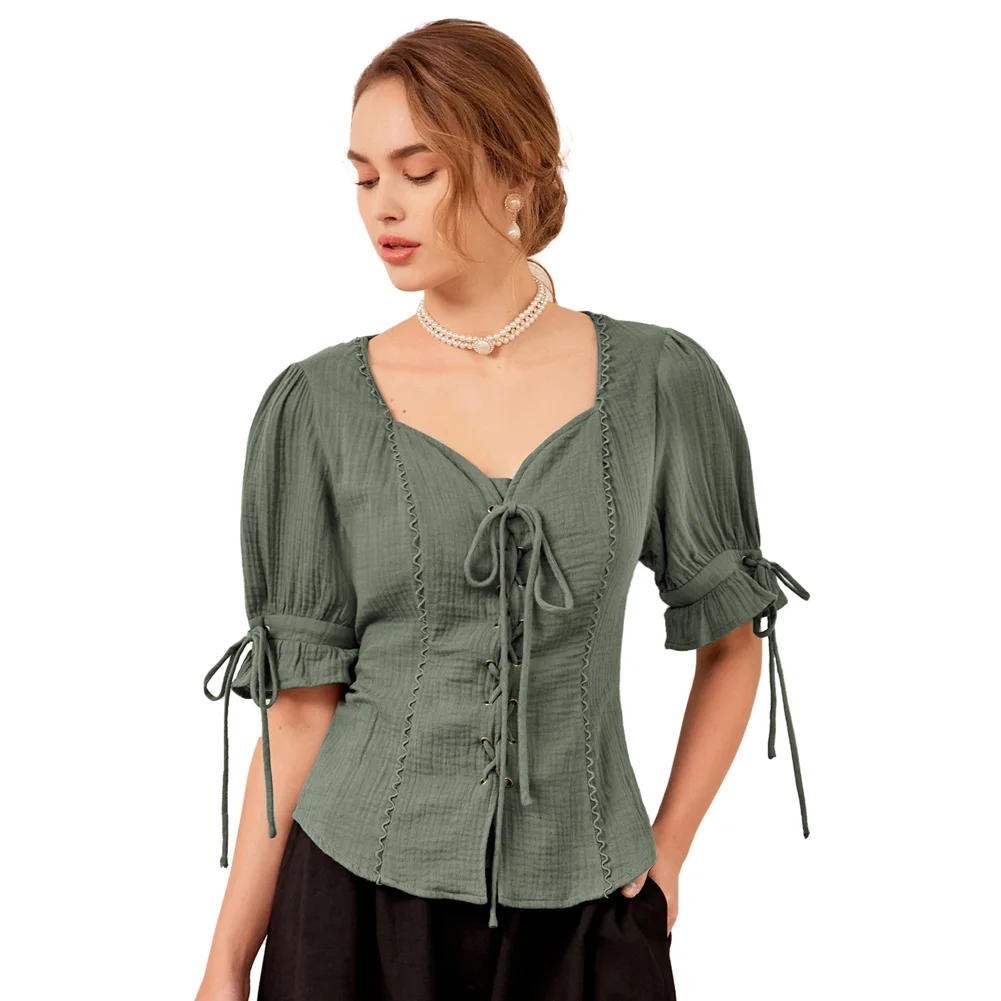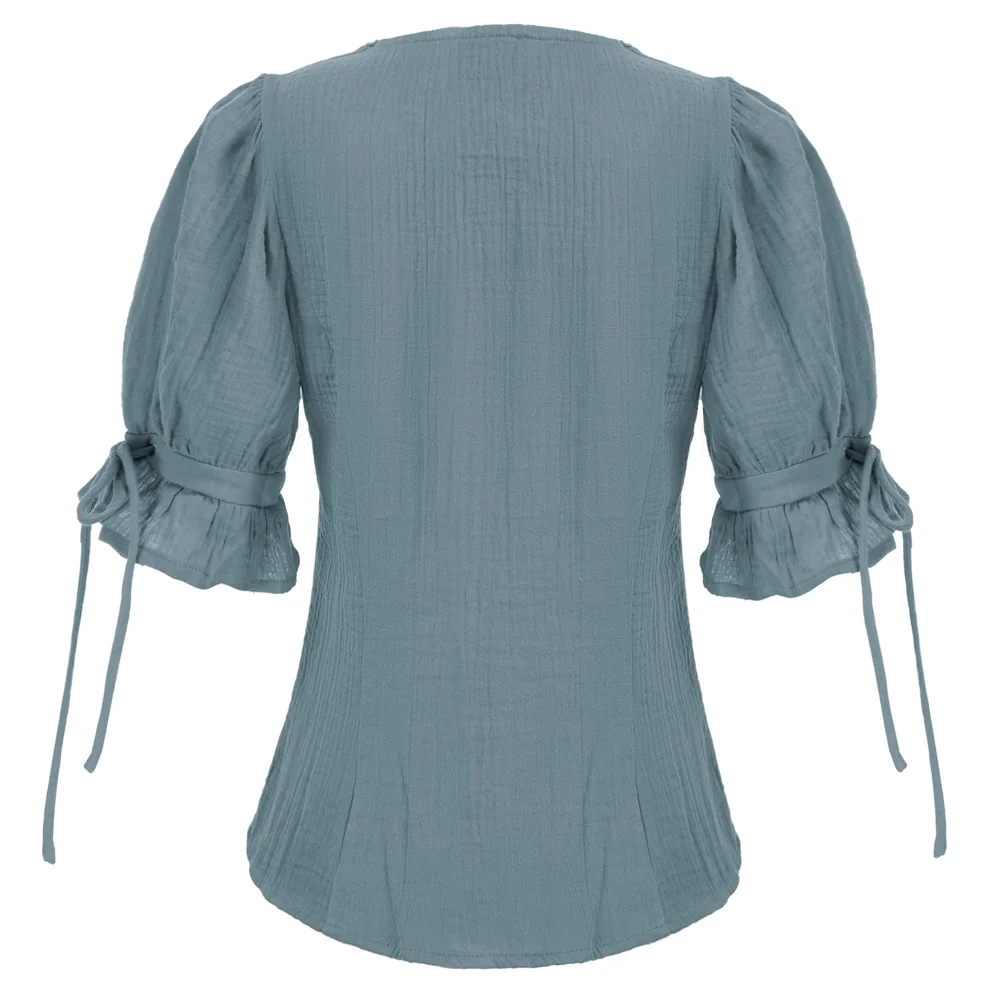 SD Women Ladies Renaissance Cotton Tops Breathable Short Sleeve V-Neck Pullover Blouse Cotton Comfortable