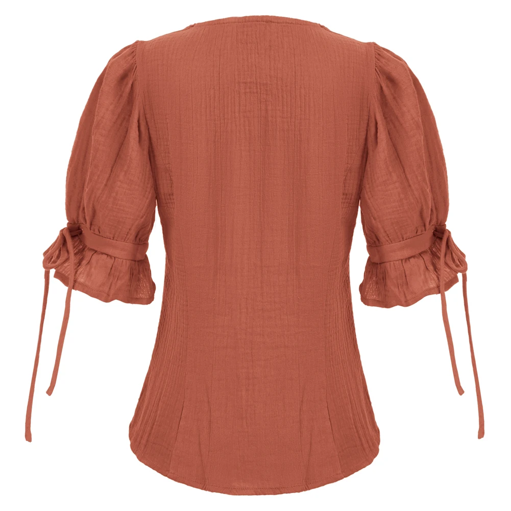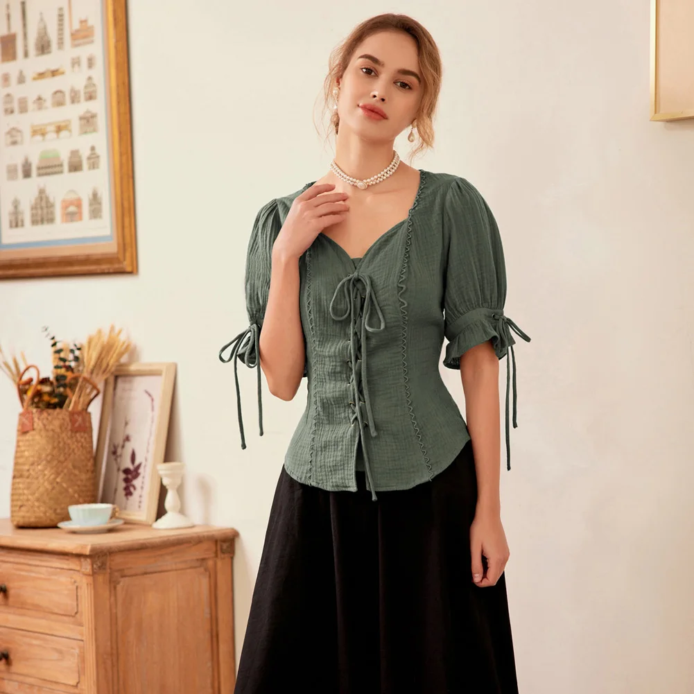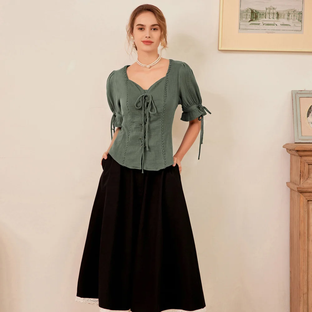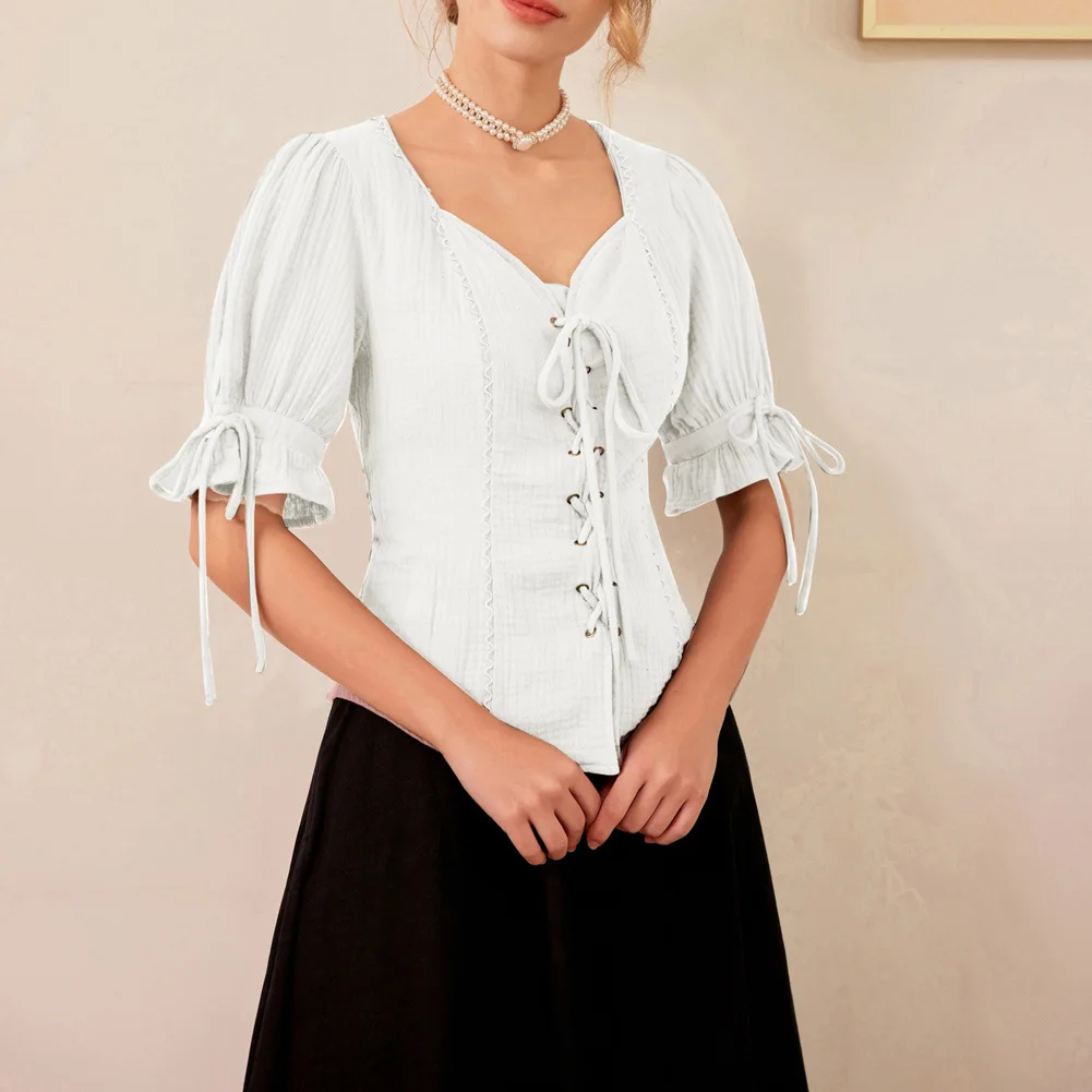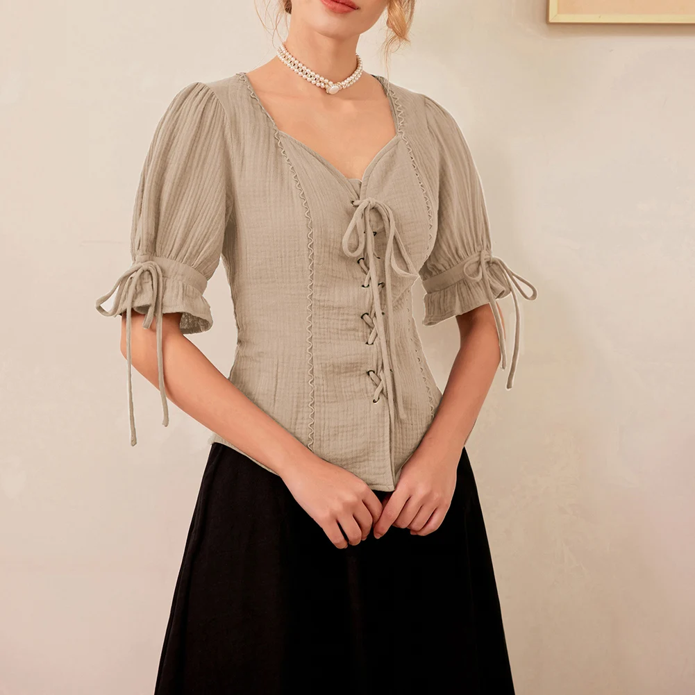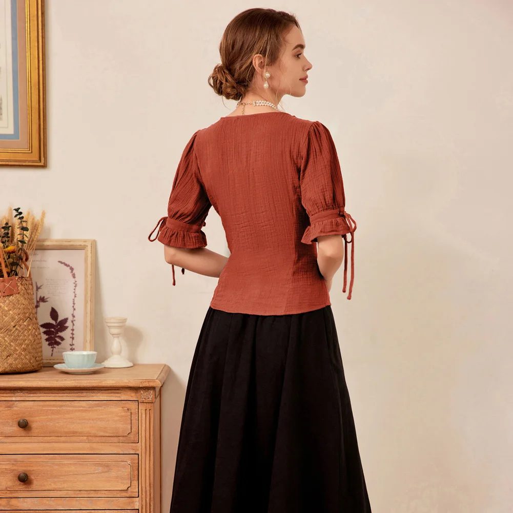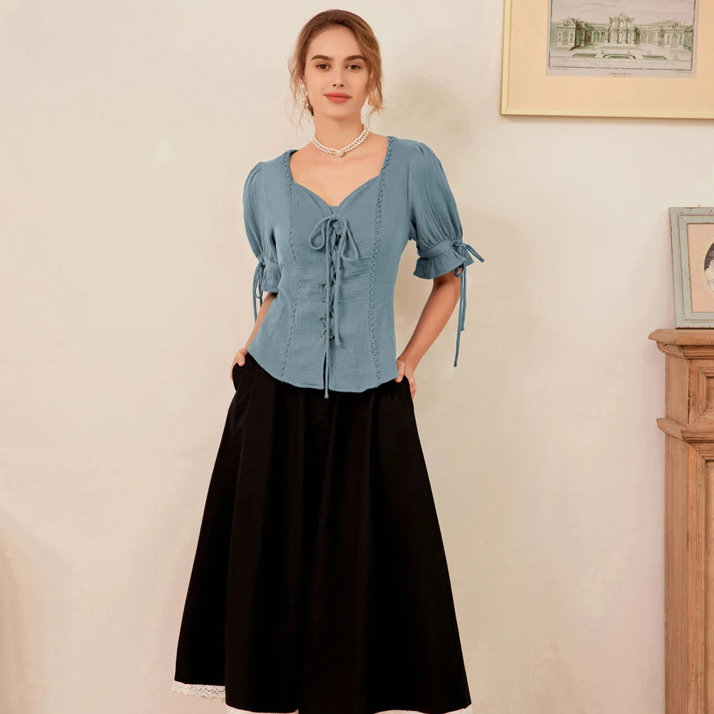 SD Women Ladies Renaissance Cotton Tops Breathable Short Sleeve V-Neck Pullover Blouse Cotton Comfortable