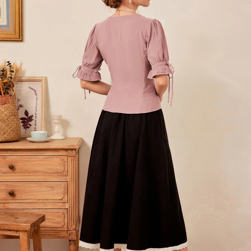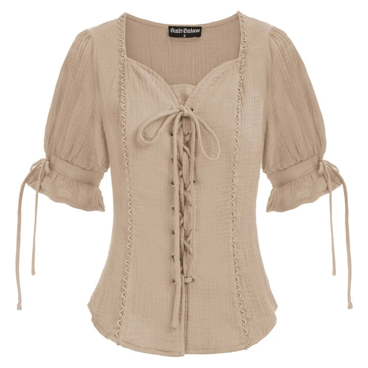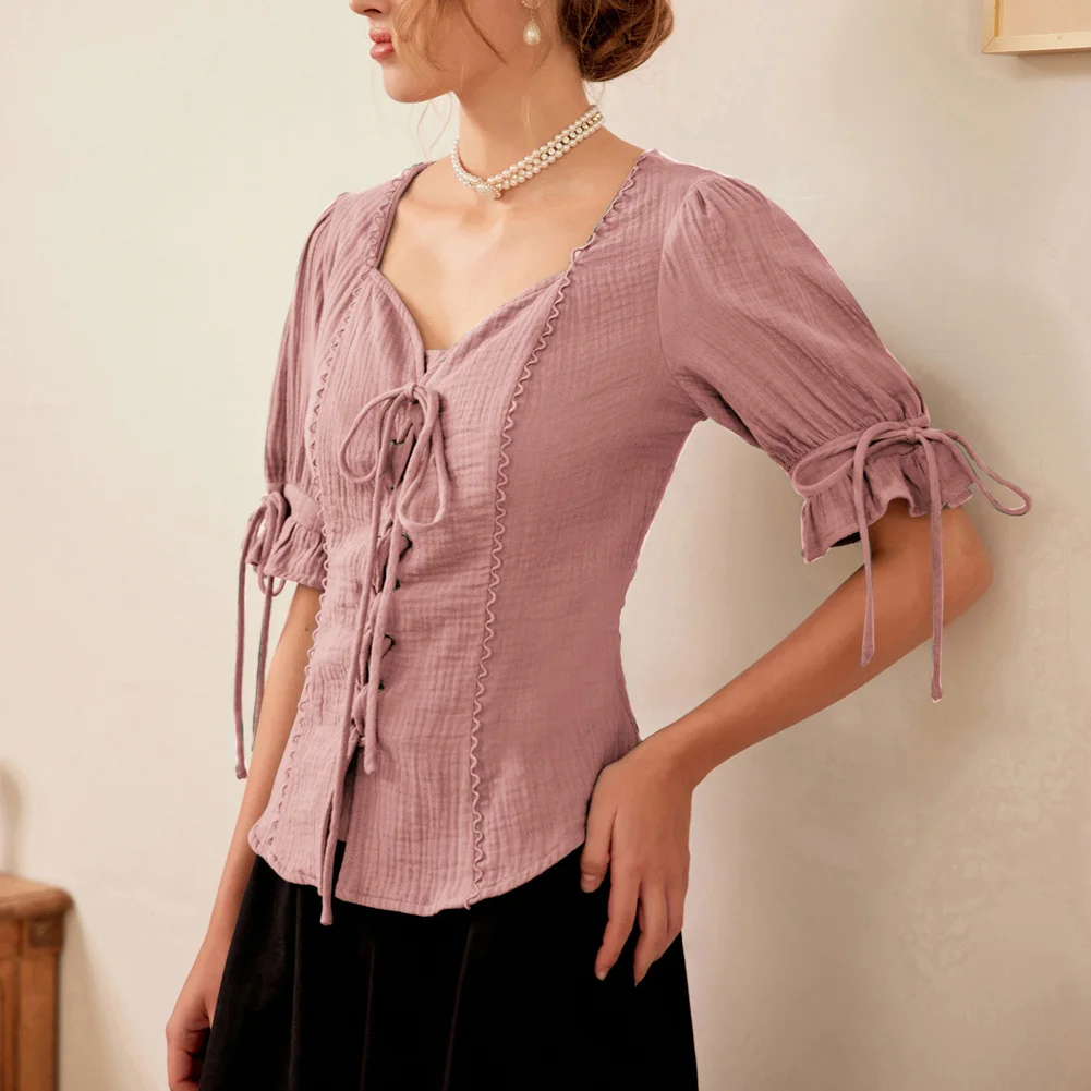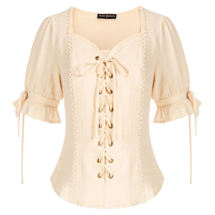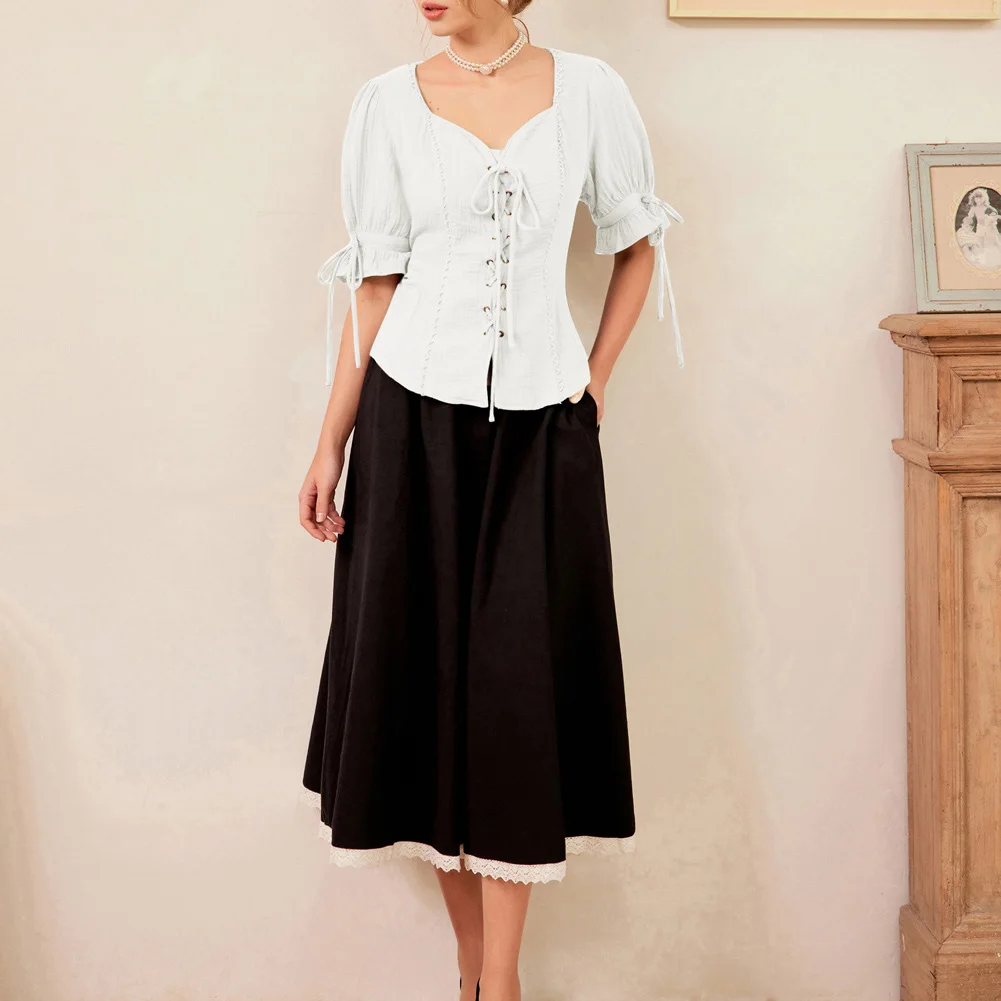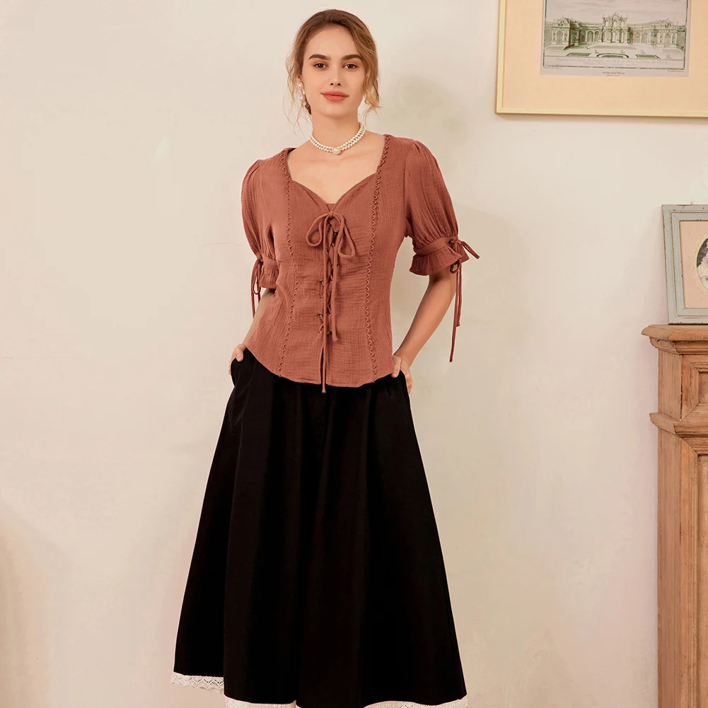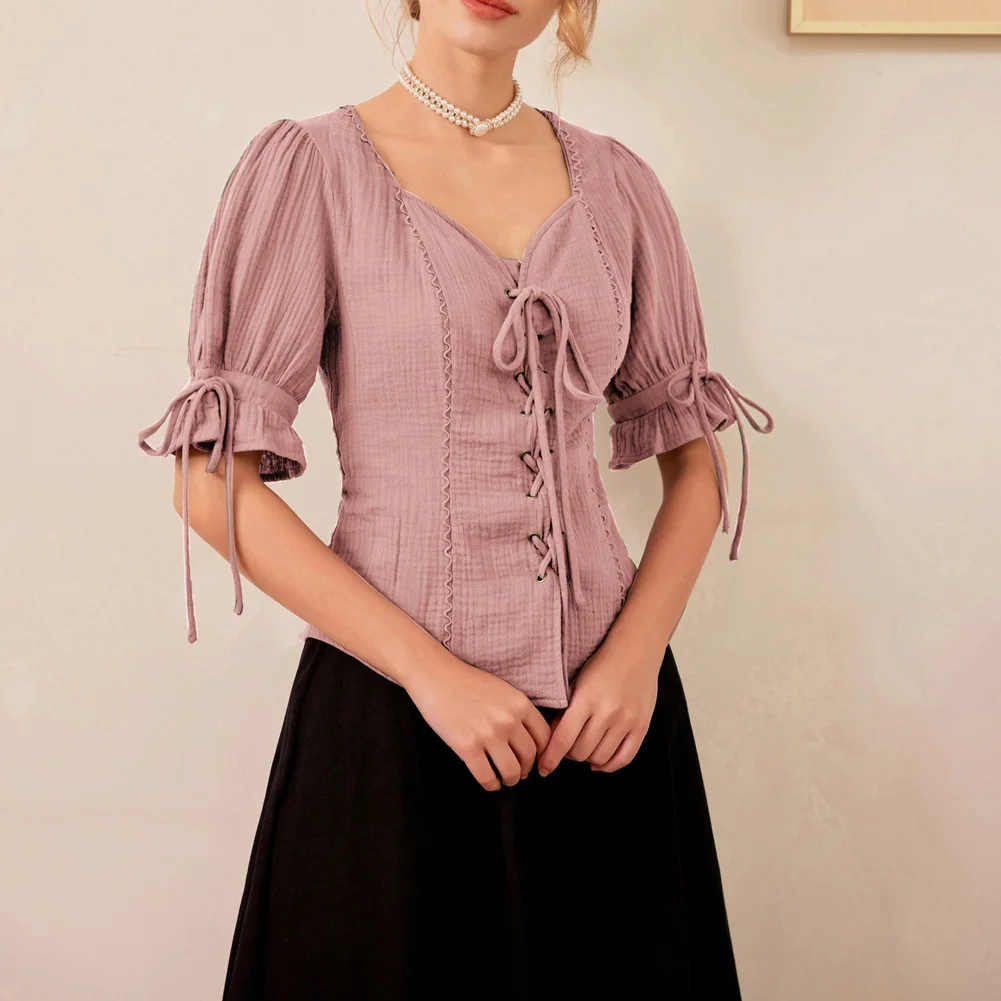 SD Women Ladies Renaissance Cotton Tops Breathable Short Sleeve V-Neck Pullover Blouse Cotton Comfortable