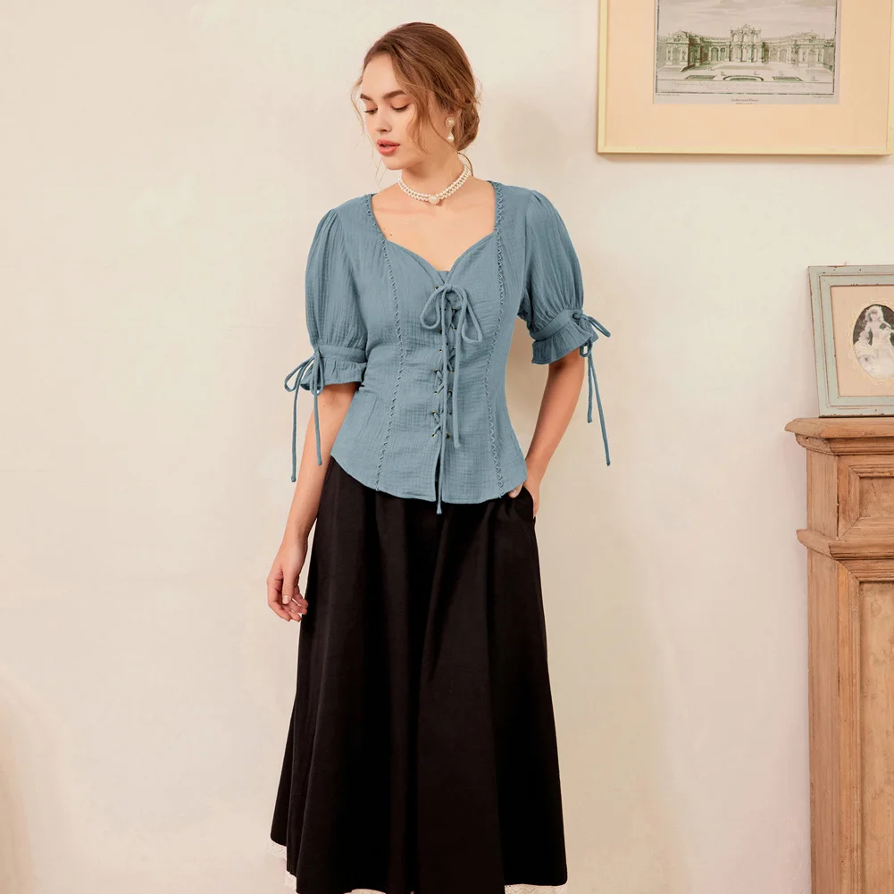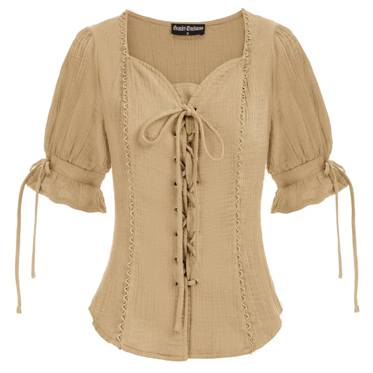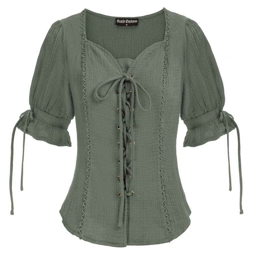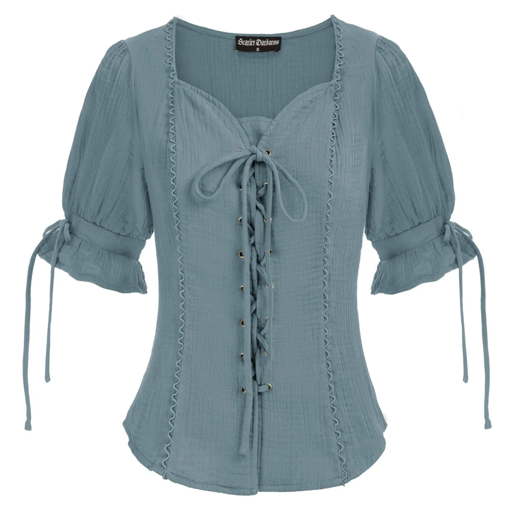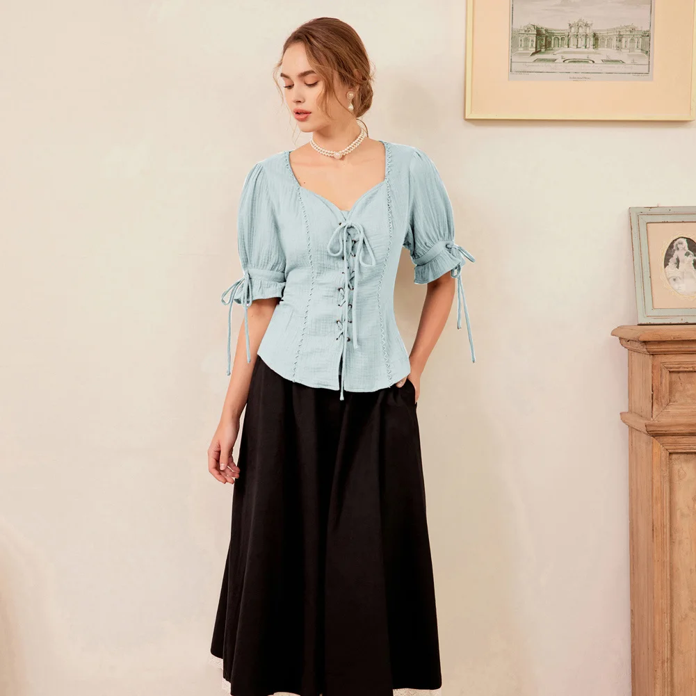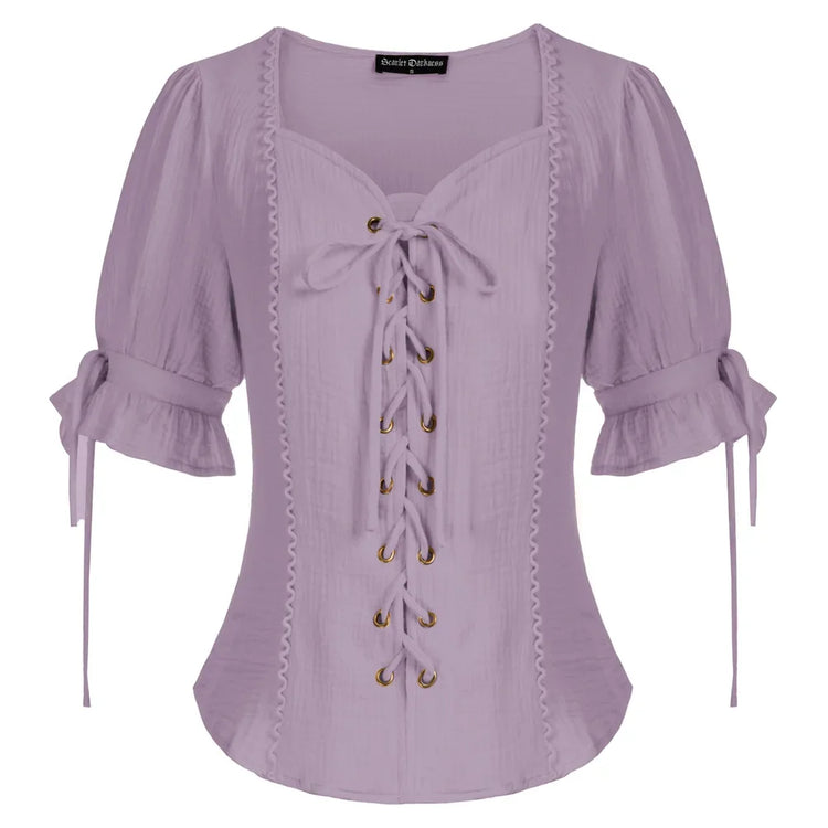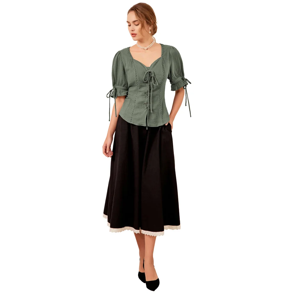 SD Women Ladies Renaissance Cotton Tops Breathable Short Sleeve V-Neck Pullover Blouse Cotton Comfortable
