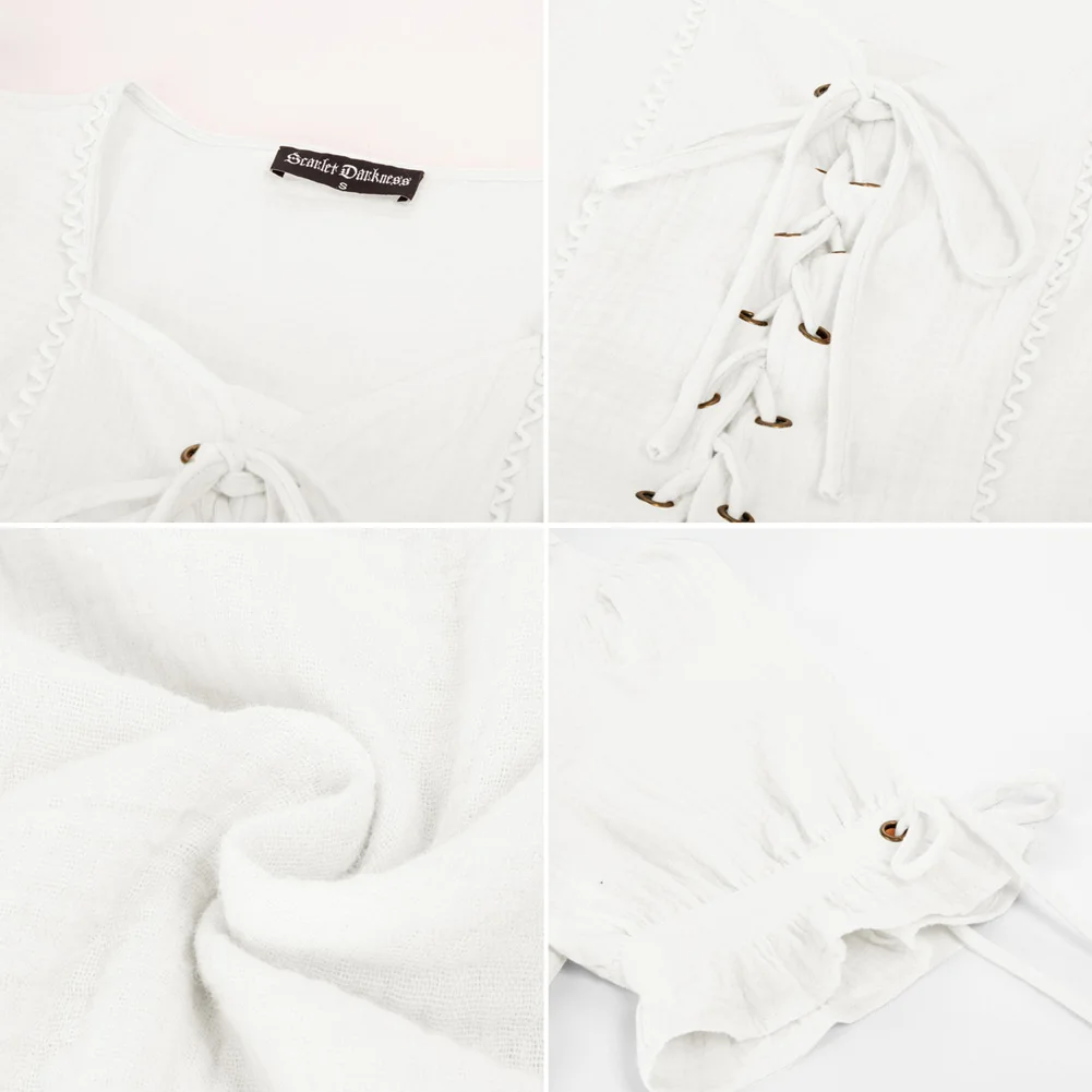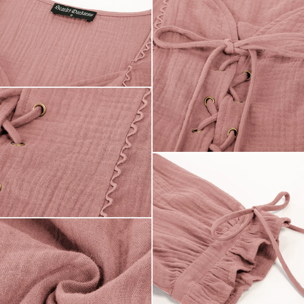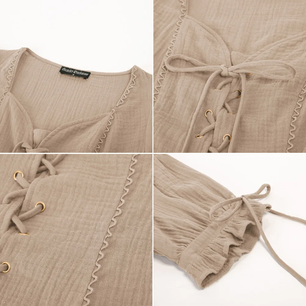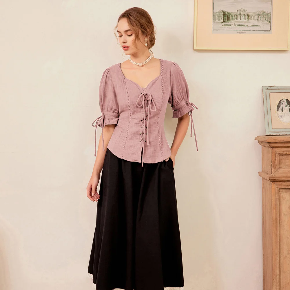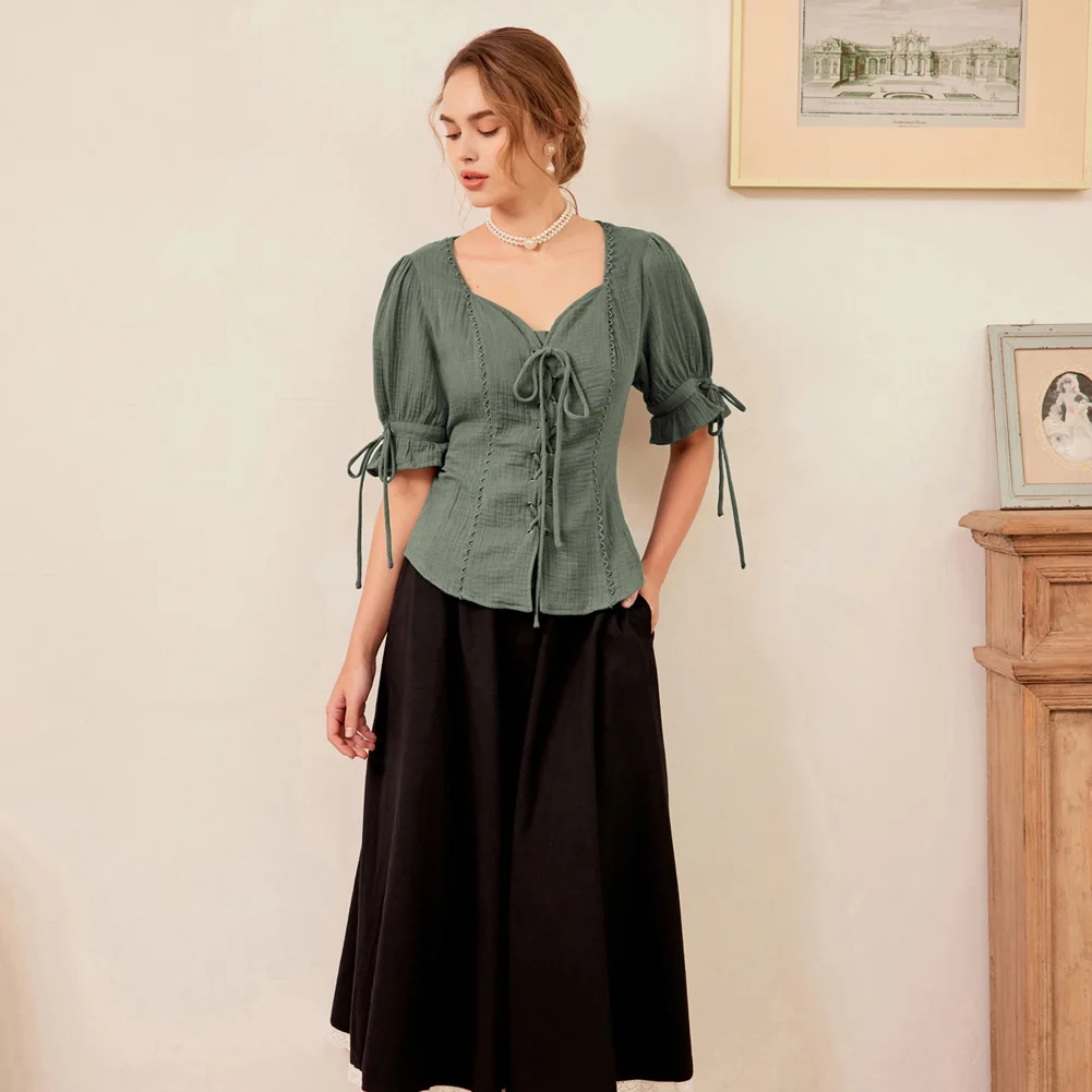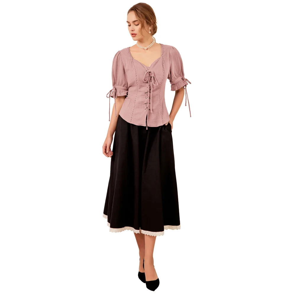 SD Women Ladies Renaissance Cotton Tops Breathable Short Sleeve V-Neck Pullover Blouse Cotton Comfortable