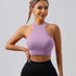 Sport Bra Women Rib-Knit Yoga Vest Round Neck Athletic Crop Top Seamless Elastic Push Up Underwear Without Pad Sportwear