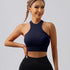 Sport Bra Women Rib-Knit Yoga Vest Round Neck Athletic Crop Top Seamless Elastic Push Up Underwear Without Pad Sportwear