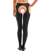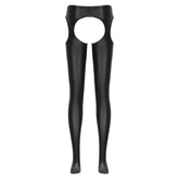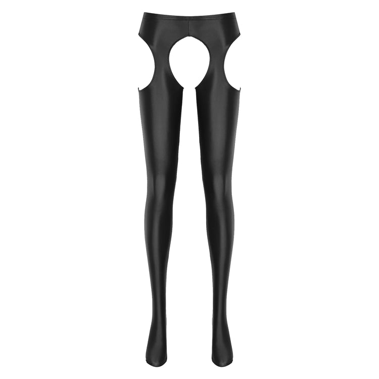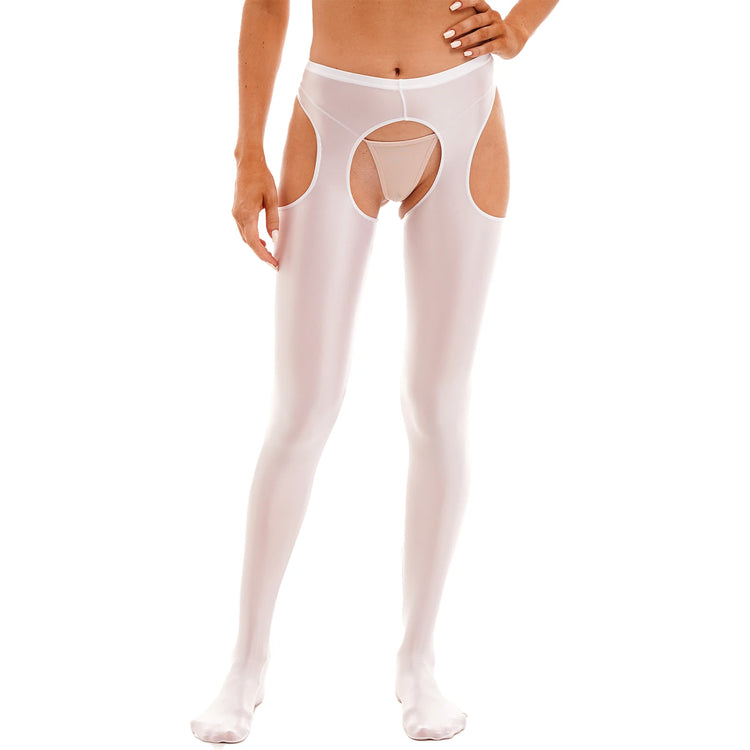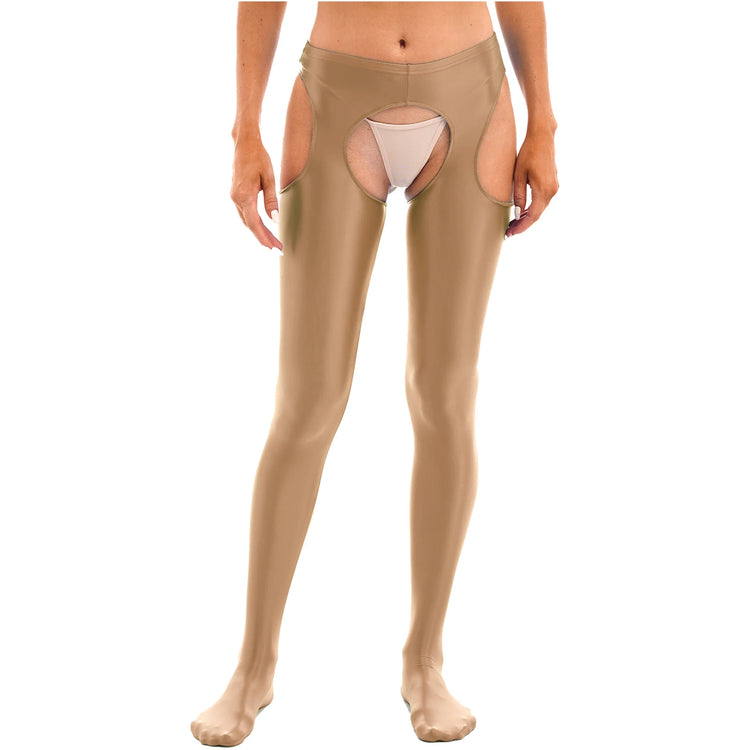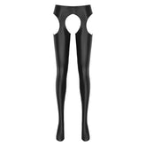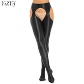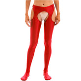 Women Glossy Hollow Out Crotchless Sexy Porn Pantyhose Mid Waist Tights Cutout Open Crotch Leggings Solid Color Footed Stocking