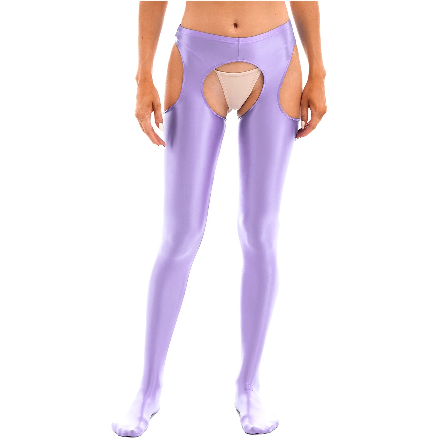 Cutout and crotchless design, glossy surface and slim fit, makes you attractive to your lover.
