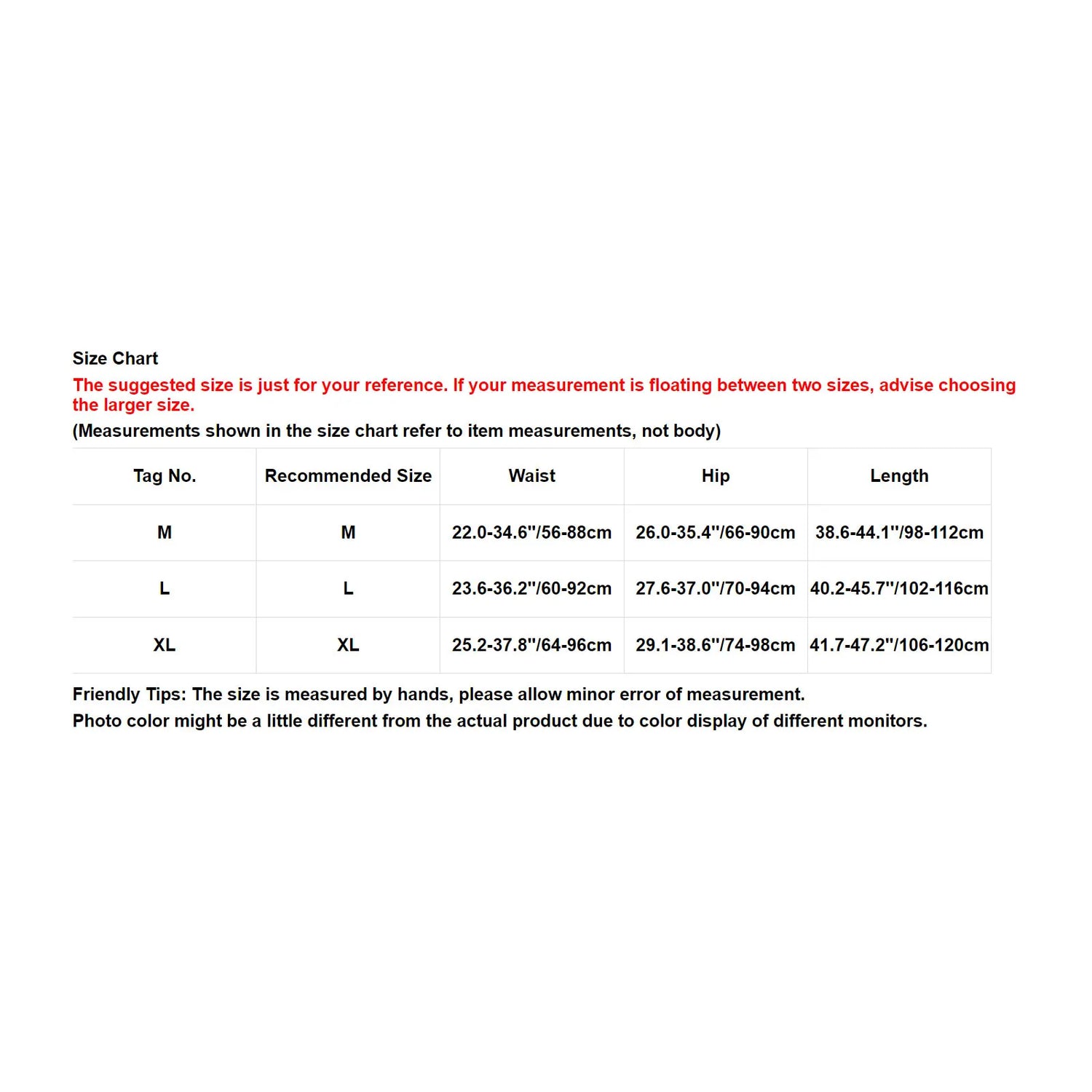 Friendly Tips: The size is measured by hands, please allow minor error of measurement.