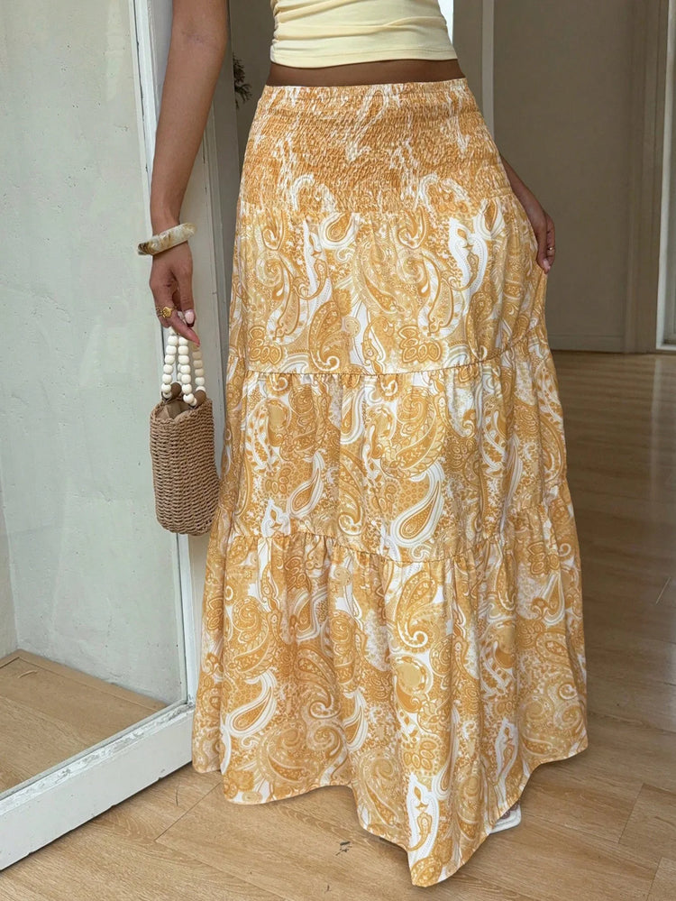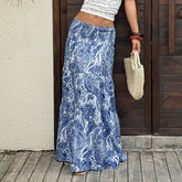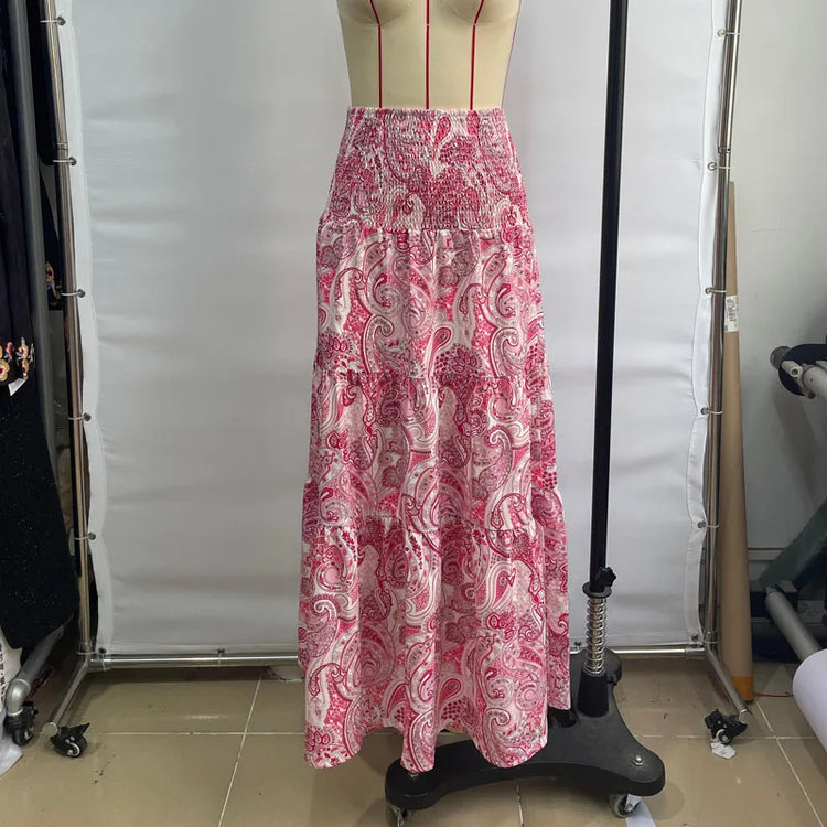 Women Skirt New Summer Skirts Sweet Print Elastic Waist Skirt A-LINE Long Office Lady Women Skirts for Women Faldas 2025 Q437