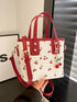 Women's Bucket Bag with Cherry Pattern, DetachableCherry Charm, and Zipper Closure - Stylish RedAccent Shoulder & Crossbody Bag