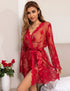 Women's Elegant Sleepwear Red Sheer Mesh Transparent Robe Set Erotic Nightgown Hot Plus Size Sexy Babydoll Lingerie with Panties