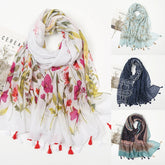 Womens Fashion Print Scarf Wrap Shawls Retro Soft Floral Tassel Scarves