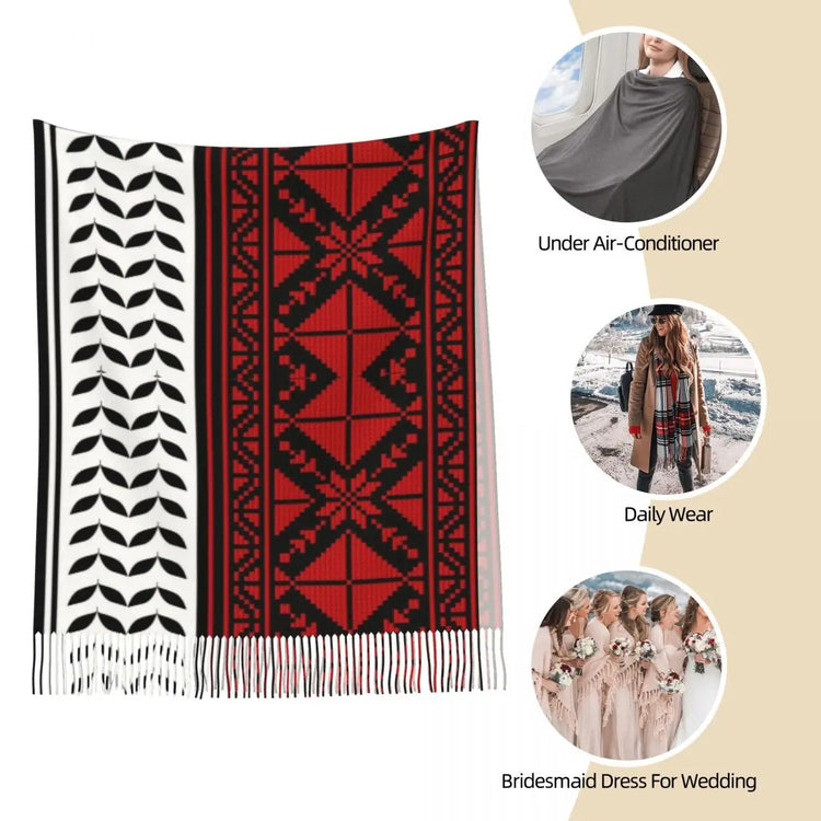 Women's Tassel Scarf Arabic Folk Kufiya Hatta Traditional Keffiyeh Pattern Large Winter Warm Shawl and Wrap Pashmina Scarves